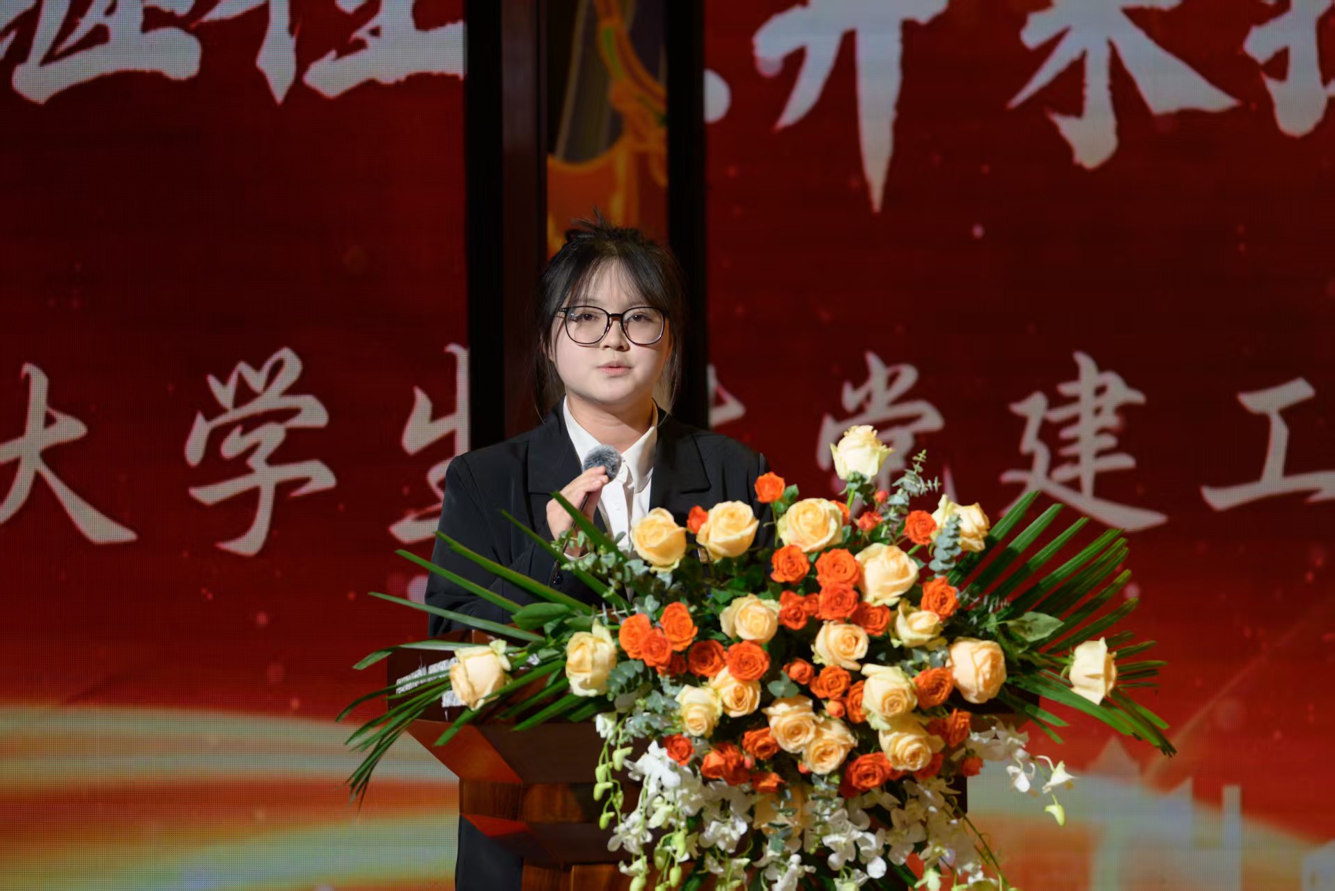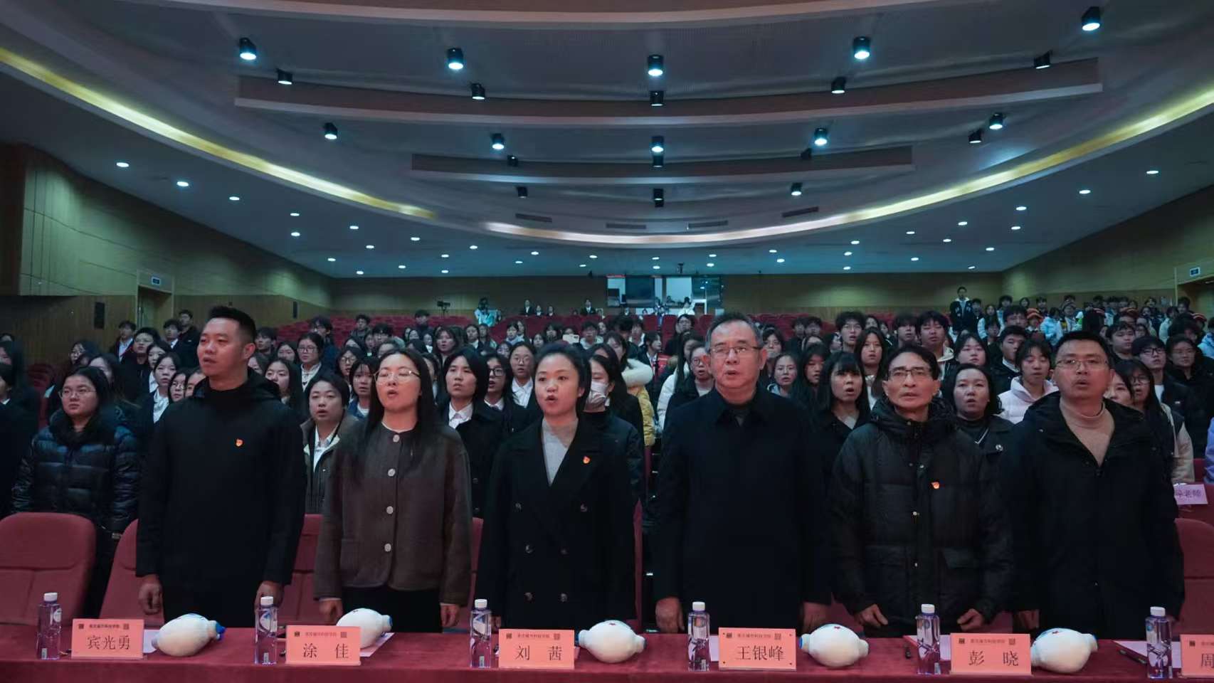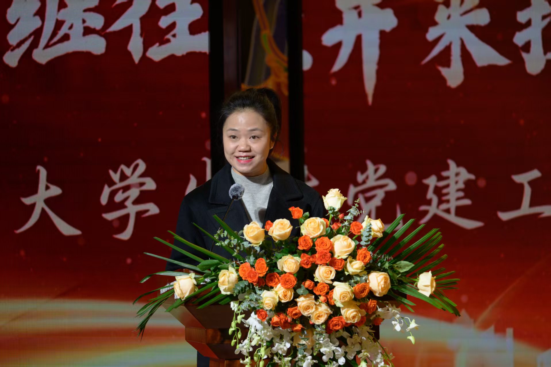 为进一步加强大学生党建工作中心队伍建设,传承红色基因,凝聚青春力量,确保工作平稳有序衔接、持续高效推进。2025年12月16日,ballBET贝博BB艾弗森第七届大学生党建工作中心(以下简称中心)换届暨表彰大会于永川校区第一报告厅开展。学校党委书记、政府督导专员王银峰,学校党委宣传部部长彭晓,学校党委组织部部长刘茜,马克思主义学院党总支副书记涂佳,经济管理学院党总支副书记周德顺,艺术与传媒学院党总支副书记宾光勇,中心及各分中心指导老师,全体中心成员及各分中心学生代表参加本次大会。此次大会由张爽,李文博,曹溢淋,张晓雅主持。 第一篇章 薪火赓续 青春筑梦 一、奏唱《国歌》 大会伊始,全体起立奏唱《中华人民共和国国歌》 二、领导致辞 大会第二项议程,由党委宣传部部长彭晓为本次大会致辞,他勉励中心及各分中心成员,要以奋进之姿勇担时代使命,在城科的沃土上绽放青春芳华,向着崇高理想与奋斗目标笃定前行;要秉持实干笃行的精神,深耕学习与工作岗位,以创新实践赋能工作提质增效,切实履行服务中心发展的职责,真正做到以知促行、以行践知。 三、观看《2024-2025学年工作回顾》 四、第七届中心骨干代表发言 大会第四项议程,由第七届中心骨干代表韩贵川发言,他回顾了第七届中心成员在理论学习、实践服务、自身建设等方面的成果,分享了以坚守初心、服务师生、团队协作、创新实干为核心的经验。表达了对第八届成员的殷切期望,勉励新一届成员接续奋斗,为学校发展贡献力量,并送上了美好祝福。 五、为第七届中心骨干代表颁发聘书 随后,中心指导老师马煦玥为大学生党建工作中心第七届干部颁发聘书,一份份聘书,不仅是肩上的责任,更凝聚着对中心干部们辛勤付出的肯定与赞誉。 往昔耕耘结硕果,未来逐梦启新程。由衷祝贺大学生党建工作中心及全体成员过往所取得的优异成绩,也向他们的不懈努力与无私奉献致以诚挚的感谢。 六、宣读《2024-2025学年优秀工作 者的表彰文件》 大会第六项议程,由大学生党建工作中心指导老师冯梅宣读《2024-2025学年优秀工作者的表彰文件》。 七、为优秀工作者和先进集体颁奖 艺术与传媒学院党总支副书记 宾光勇 为学习标兵颁奖 艺术与传媒学院党总支副书记 宾光勇 为优秀干事颁奖 经济管理学院党总支副书记 周德顺 为优秀干事颁奖 经济管理学院党总支副书记 周德顺 为优秀干部颁奖 马克思主义学院党总支副书记 涂佳 为优秀干部颁奖 马克思主义学院党总支副书记 涂佳 为优秀部门颁奖 学校党委书记、政府督导专员 王银峰 为先进集体颁奖 八、节目《玉盘》 由中心成员带来的《玉盘》,《玉盘》传递着中华民族古今一脉的求索精神,彰显家国雄心与逐梦热忱,展示了传统与现代融合、童真与宏大共鸣的文化传承与时代力量。 第二篇章 初心如炬 再谱华章 九、宣读《新任干部任命文件》 大学生党建工作中心指导老师易建平宣读《新任干部任命文件》,一纸任命,承载使命;一份职责,凝聚担当。愿第八届大学生党建工作中心全体成员,承续初心、笃行不怠,共同书写中心发展的崭新篇章。 十、新老干部授牌仪式 随后,由第七届干部为第八届干部授予工作牌、交接中心旗帜。这一交一接,既传递着上一届全体成员的期盼,也意味着新一届干部正式扛起了中心的工作责任。 十一、观看第八届风采创意视频 十二、第八届中心骨干代表发言 大会第十二项议程。由第八届中心主任袁晓琴发言。袁晓琴同学代表全体中心成员庄严承诺,将始终坚守加入中心的初心使命,永葆对大学生党建工作的热忱,以高标准严格要求自我,持续精进学识本领,以乐观坚韧的态度直面挑战、勇克难关。 十三、情景剧《革命之精神》 紧接着,由体育大健康学院同学带来情景剧表演—《革命之精神》,革命烈士以“舍生取义”的信仰,畅想家国光明未来,诠释共产党人“道之所在,虽千万人吾往矣”的使命,传承革命精神。 十四、领导总结讲话 最后一项议程,由学校党委组织部部长刘茜为本次换届暨表彰大会作总结讲话。刘部长对本次大会的圆满成功表示热烈祝贺,向深耕学校党务工作一线的指导老师致以崇高敬意,并向接过重任的第八届成员送上诚挚祝贺与殷切期待。回顾2024-2025学年,第七届成员在思想引领、组织建设、实践服务等领域深耕实干,以每月“理论学习会”浸润青年思想,以严谨细致的态度落实各项工作任务,以丰富多样的活动凝聚青春力量,交出了一份亮眼的答卷。刘部长强调,换届是薪火相传的纽带,青年骨干要扛起时代重任,锚定新时代青年的使命任务与责任担当,立足青年思想特点创新工作形式,善用新媒体平台扩大工作覆盖面与影响力,以理想信念为帆,以实干担当为桨,为中华民族复兴贡献青春力量。 大学生党建工作中心第七届换届暨表彰大会圆满结束! 文稿来源:钟宏鑫 梁红梅 照片来源:罗婷 梁红梅 潘芊宇 郭雨欣 石运红 刘雯莉 唐铭尉 杨锦灿 视频来源:钟宏鑫 陈妍 唐啸 夏宇潇 陶嘉辉 阳雨杉 邓佳欣 石运红 编辑:朱江玲 阳雨杉 审核:党委组织部