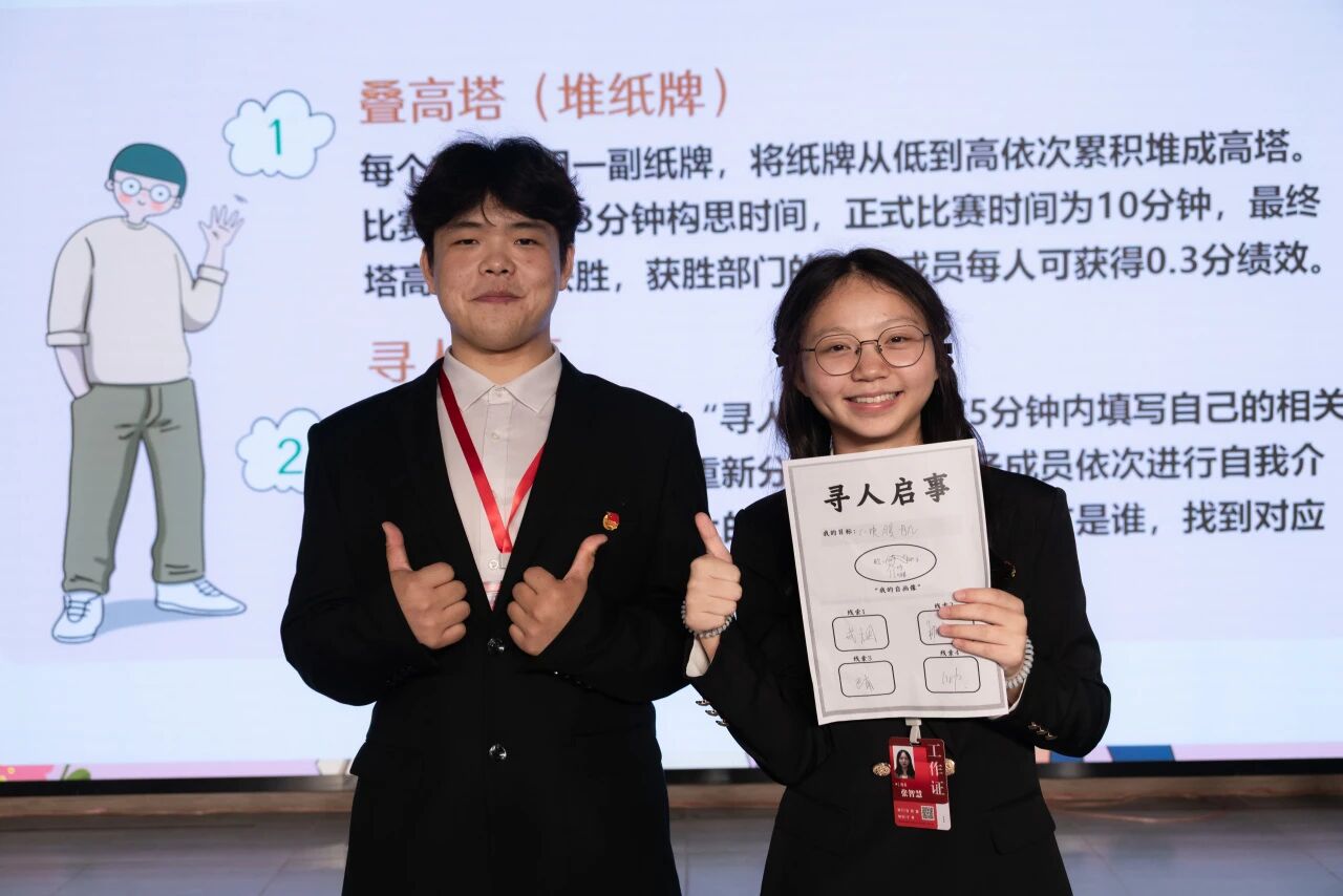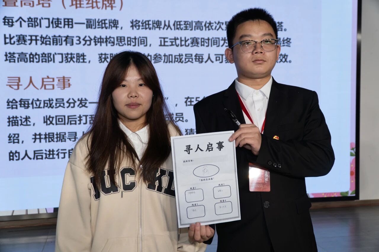 为推动大学生党建工作中心新老成员高效互动、紧密合作,夯实中心组织建设,强化成员集体归属感与团队凝聚力,大学生党建工作中心(以下简称“中心”)11月5日于永川校区主教112室举行第八届大学生党建工作中心新老成员见面会,随后全体转场到一食堂三楼大学生活动中心举办破冰活动。中心指导老师易建平、冯梅、马煦玥及第八届全体成员参加本次活动。本次见面会由李文博同学主持,破冰活动由张爽同学主持。 第一环节:见面会 活动伊始,主持人向在场师生致以诚挚问候,并依次介绍到场的中心指导老师。 会议第一项议程由中心指导老师马煦玥致开场词,她以“冬意相聚”为引,向第八届新成员表示热烈欢迎,向坚守奉献的老成员致以诚挚感谢,并回顾中心在“一校两区”格局下,通过多元活动锤炼成员党性、助力学校党建发展的历程。同时,她从“以学铸魂”“服务赋能”“创新提质”三方面提出期望,鼓励全体成员践行青春誓言,共创中心佳绩,最后送上美好祝愿。 紧接着,全体成员一同观看了中心第七届工作回顾视频。一幕幕鲜活的场景历历在目,瞬间拉近了彼此的距离,让大家深深体会到团队的凝聚力与温情。视频里,既有中心成员们工作时的全神贯注与奋勇争先,也记录了他们生活中的欢声笑语与温情瞬间。 随后,由中心副主任陶嘉辉介绍中心组织架构和日常运营情况。 接着,由主持人介绍中心各部门骨干及主要职责。每个部门骨干的亮相都伴随着明确的职责介绍,不仅让在场人员清晰了解中心的组织架构与工作分工,更展现出了中心的专业素养与责任担当,为后续各项中心工作的协同推进奠定坚实基础。 见面会最后一项议程,第八届中心主任袁晓琴代表讲话。她回顾了在中心一年多的成长历程,分享了参与活动策划、档案培训、党员档案把控等工作的收获,提及换届大会克服困难圆满完成任务的经历,感慨合作的力量与自身从懵懂到独当一面的蜕变。接着,她感谢老师与中心成员过往的信任支持,承诺新一届干部将以更高标准、更严要求、更实作风推动中心发展,同时呼吁全体成员团结协作、发挥特长,并衷心致谢师生,号召携手开创中心新局面。 最后,主持人宣布见面会圆满结束,与会人员合影留念。 第二环节:破冰活动 活动伊始,新成员依次进行自我介绍,通过分享个人兴趣、专业及对中心的期待,打破陌生壁垒,为后续互动奠定良好基础。 随后进入趣味游戏环节,首个游戏“叠高塔(堆纸牌)”中,各部门成员手持一副纸牌,在3分钟构思时间内讨论策略,10分钟正式比赛时段里默契配合,力求搭建出最高纸牌塔,现场氛围紧张又热烈。 紧接着,“寻人启事”游戏深化了成员间互动:主持人向每人分发卡片,5分钟内填写性格、特长等个人信息;卡片回收打乱后重新分发,成员结合卡片描述,现场寻找主人身份,找到后两人相互进行自我介绍。现场笑声不断,既让大家快速记住彼此特点,也拉近心理距离,强化了团队归属感。 活动最后,主持人宣布活动圆满结束,并组织各部门成员及中心全体人员合影留念,定格下团队初次协作的珍贵瞬间。此次破冰活动不仅让新成员快速熟悉,更增强了团队凝聚力,为中心后续工作的高效开展注入活力。 第三环节:新老干部座谈会第三环节:新老干部座谈会 第七、八届大学生党建工作中心新老干部交流会在一食堂301召开。 第七届干部代表分享了在中心的工作经验与成长心得,他们寄语第八届干部,要始终坚守对党的忠诚与热爱,积极投身中心各项工作,以实际行动为同学们树立榜样、传递正能量。期间,新老干部围绕“如何优化工作流程、提升党建活动实效”展开深入探讨,共同为推动中心工作高质量发展出谋划策。 交流环节结束后,中心指导老师作总结发言,对新一届干部提出四点希望与要求:一是深耕理论,通过系统学习强化思想淬炼,夯实党建工作理论基础;二是凝心聚力,在部门协作与跨校区联动中团结共进,形成工作合力;三是开拓创新,结合新时代大学生特点突破传统工作模式,丰富党建活动形式;四是正身律己,以严格标准筑牢作风建设,展现中心成员的良好风貌。 文稿:梁红梅 卢秋宇 钟宏鑫 照片:郭雨欣 石运红 唐啸 刘雯莉 罗婷 潘芊宇 朱江玲 视频:周静茹 徐丹怡 钟宏鑫 杨佐杰 编辑:候雨佳 刘雯莉 审核:党委组织部