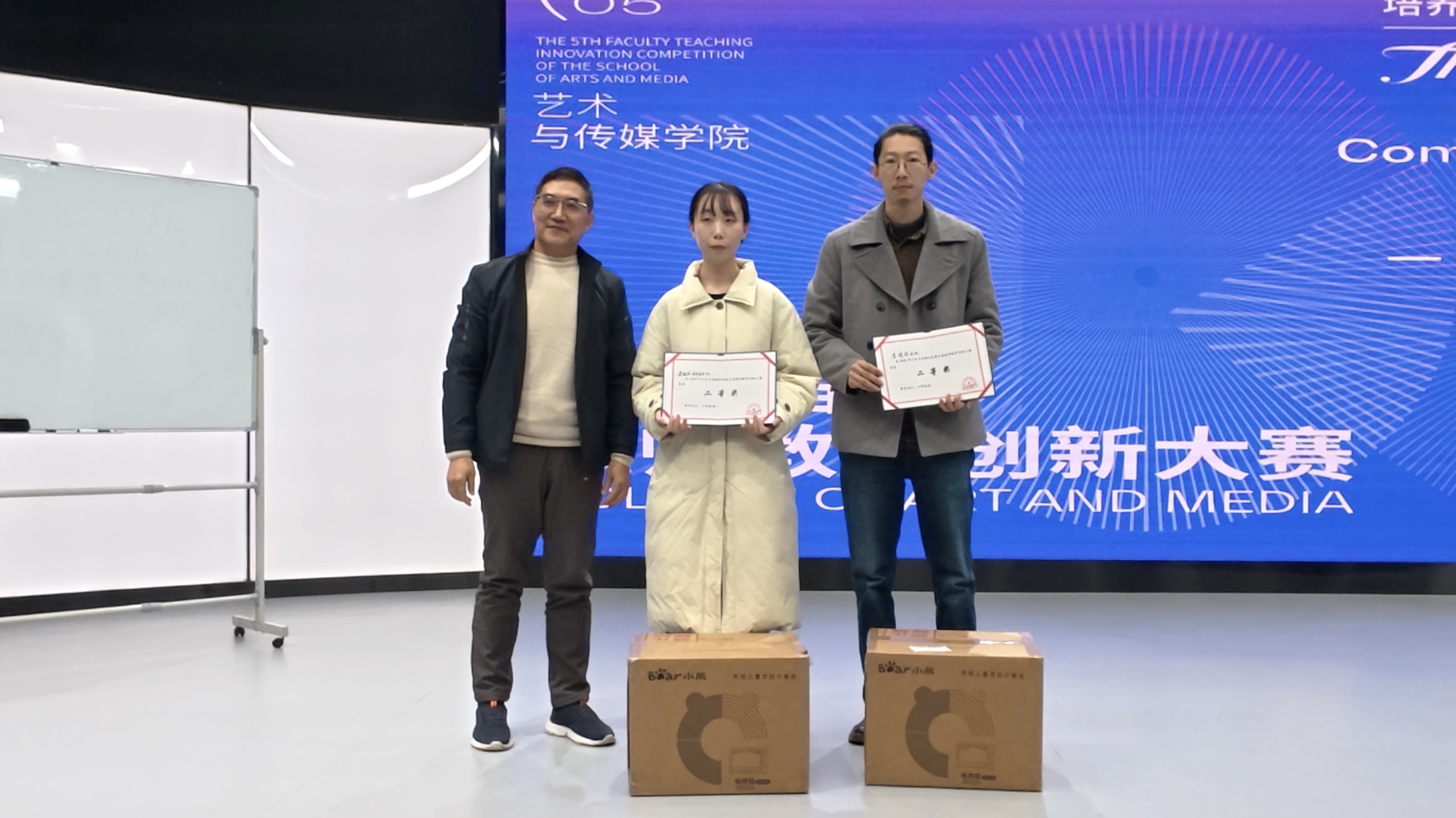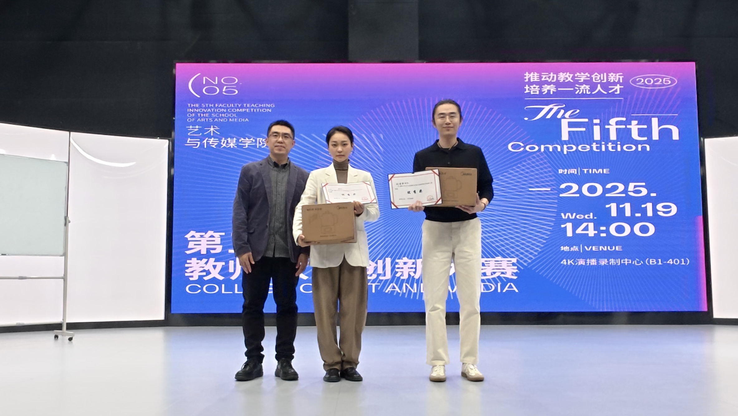 11月19日下午,艺术与传媒学院第五届教师教学创新大赛在4K演播录制中心成功举办。原重庆工商大学文学与新闻学院副院长邓海荣、重庆邮电大学传媒艺术学院副院长王睿为赛事特邀评委。ballBET贝博BB艾弗森校长助理、巴南校区党工委书记、管委会常务副主任崔继昌,教务处处长王颖莅临本次大赛,艺术与传媒学院院长蔡敏、院长助理邵文杰及各系(副)主任、全体教师全程参与观摩,大赛由邵文杰主持。此次大赛由ballBET贝博BB艾弗森新视界设计产业学院组织。 崔继昌在致辞中指出,教学创新是高等教育高质量发展的核心动力,希望全体教师以赛事为契机,将创新方法融入日常教学,以优质课堂培养适应社会需求的高素质、创新型应用人才。 8位参赛教师,采用“5分钟说课+10分钟讲课”的形式,呈现多元教学内容:或借AI等技术破解理论实践脱节痛点,或构建传统文化“理论—实践—创意”转化体系,或推行“双师协同+阶梯式实训”育人模式,或通过项目制、跨学科融合拓展教学边界。参赛教师们教态自然、表达精准,灵活运用智能化教学手段,尽显各专业创新育人特色。 比赛间隙,教师李欣灿、李强分享了自身通过教学创新大赛在课程建设、科研教改、高水平教学竞赛方面的成长经验。二人通过“以赛促研、教赛结合”,分别斩获市级教改立项、联盟高校教学创新大赛二等奖、2025年度校级教育教学教改创新成果奖、重庆市教科院2025年新时代高校“大思政课”育人体系优秀案例二等奖等多项成果,为在场教师提供了宝贵借鉴。 评委们围绕现场汇报呈现、教学案例设计、教学创新实践及现存不足展开点评,为参赛教师提出针对性改进建议。 王睿教授肯定了教师们在课程准备与课堂组织上的优异表现,同时建议加强课程定位分析,以成果导向持续优化教学内容推动教学创新,深化课程思政教育的融入方式创新,提升信息技术与教学的深度融合,注重对课堂教学互动环节的针对性设计。 邓海荣教授提出,智能协同教育是未来教学改革的重要方向,关注育人对象,明确教学痛点,鼓励教师以问题为导向优化教学设计,注重教学过程中的环节设计,优化课程评价方式,关注课堂中的宏观目标与微观创新的关系,通过高质量互动引导学生思考。 经过激烈角逐,陈倍贝荣获一等奖,李澍祺团队、李诗伯荣获二等奖,赵宏伟团队、王早、陈彦羽荣获三等奖,杨姗团队、刘金典荣获优秀奖。蔡敏、邓海荣、王睿、邵文杰为获奖教师颁发证书及奖品。 蔡敏做活动总结,他肯定了参赛老师的精彩表现,参赛教师的教学设计扎根教学实际、回应育人需求,充分诠释了大赛主题。鼓励教师们持续提升教学设计感与表现力,通过集体观摩与实践积累实现教学能力进阶。本次大赛首次邀请校外评委,提升了评审的客观性,评委们的点评和建议为学院教师的教学能力提升指明了方向。 此次大赛既是“创新赋能教学”的集中展示,更是“赛事助推育人”的生动实践。艺术与传媒学院将继续深化教育教学改革,推动信息技术与课堂教学深度融合,让教学创新成为常态、赛事价值惠及更多师生,为培养适应社会需求的一流应用型人才奠定坚实基础。(艺术与传媒学院 谭文海 田嘉怡/图 佘晓瑜/文 传媒中心 胡乐怡/编辑)