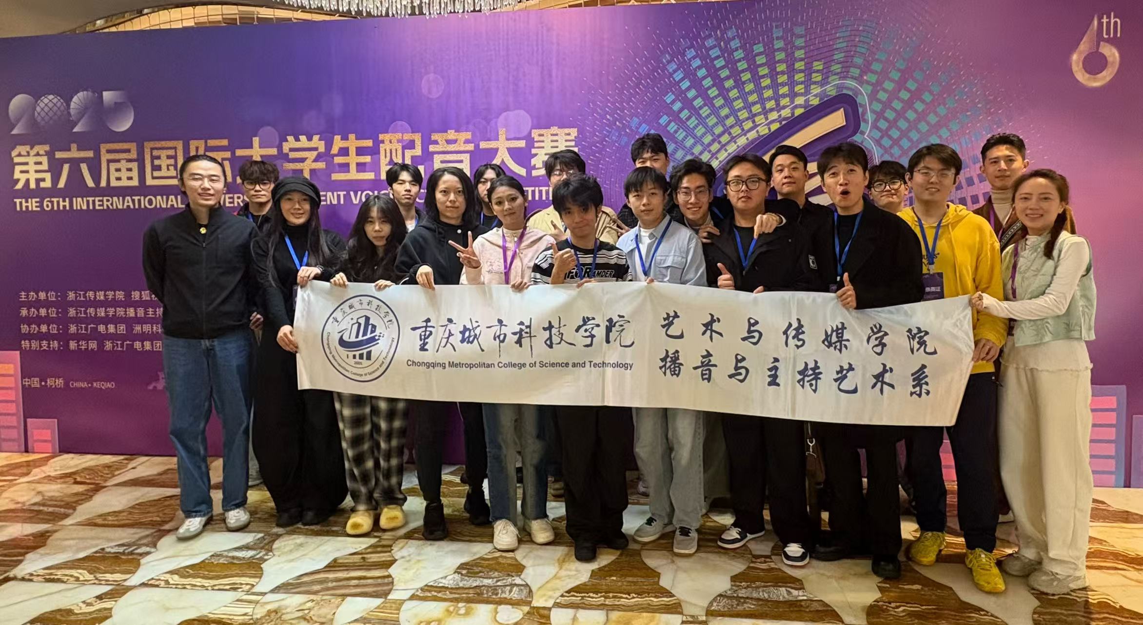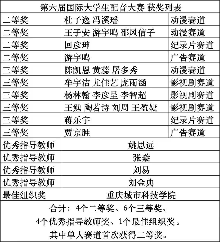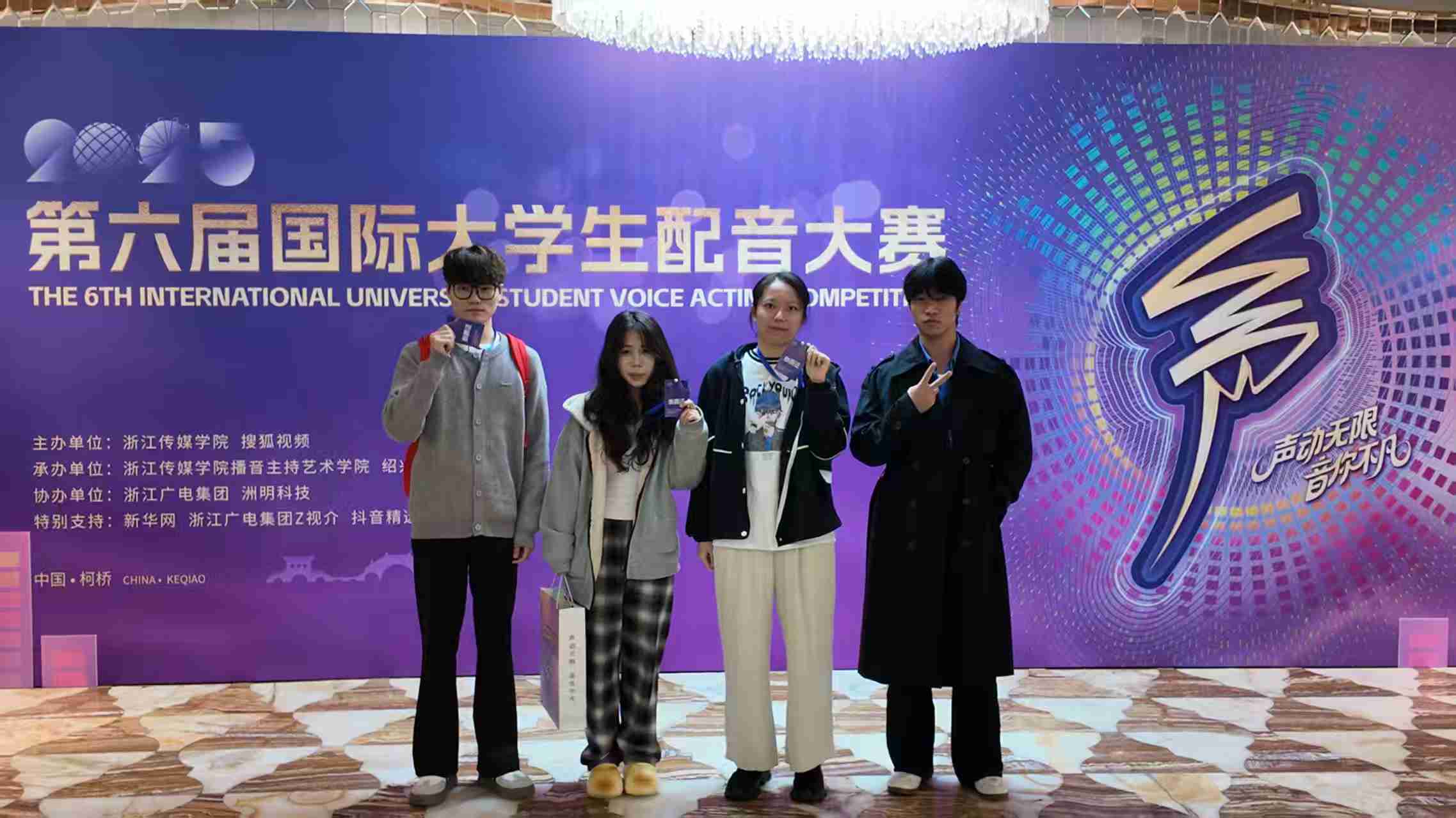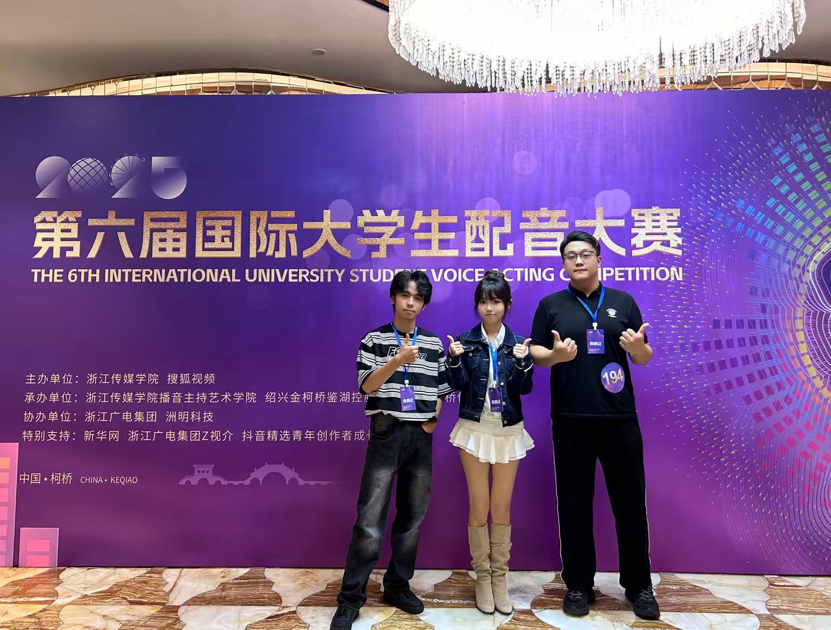 11月1日,第六届国际大学生配音大赛暨鉴湖声音艺术季落下帷幕。ballBET贝博BB艾弗森艺术与传媒学院播音与主持艺术系师生凭借出色的配音实力与团队协作,在赛事中取得优异成绩。本次大赛,入围线下赛总人数实现历史性突破;斩获4 个二等奖、6 个三等奖、4 个优秀指导教师奖,ballBET贝博BB艾弗森荣获最佳组织奖。活动由ballBET贝博BB艾弗森、微影星火数字传媒产业学院组织。 (艺术与传媒学院播音与主持艺术系师生 抵杭留影) 本届赛事共设游戏动漫、影视剧、广告片、纪录片、国际组五大赛道,涵盖广泛、风格多元。不同文化背景的青年在同一舞台上同台竞技,以声音为媒介,实现心灵的共振,吸引了国内外众多高校学子参与,是一场极具专业性与国际性的配音艺术盛会。 在比赛中,ballBET贝博BB艾弗森学子展现出扎实的配音功底与多元的艺术表现力。10月31日,第六届国际大学生配音大赛各赛道晋级赛,在绍兴柯桥火热开赛。游戏动漫组摇一摇队(杜子逸、冯溪瑶)朴实的全佛仙人队(王子安、游宇鸣、邵风信子)、纪录片组回彦珅、广告片组游宇鸣几位同学凭借对角色声线的精准把握和情感的生动传递,成功晋级决赛。在11月1日的决赛中,以上同学表现依旧出色,均荣获大赛二等奖。 (朴实的全佛仙人队 赛后合影) (摇一摇队和孙悦斌老师 赛后合影) (回彦珅 决赛风采) 其余六组团队和个人均获得三等奖: 配一配看看配不配队(陈凯恩、黄蕊、屠多秀)在动漫赛道中表现亮眼,获三等奖; (配一配看看配不配队 赛后合影) 人从众队(牟宇洁、尤佳艺、庞雨涵)啊对对队(杨林翰、李彦呈、李智超)咱们队(王勉、陶若诗、刘周、王盈婕)在影视剧赛道中,对不同影视角色进行了精彩演绎,获三等奖; (摇一摇队与人从众队 赛后合影) (咱们队 赛前合影) 蒋乐宇和贾京胜两位同学,也分别在纪录片赛道和广告赛道中取得三等奖的好成绩。 (贾京胜 赛前留影) 同时,姚思远、张璇、刘易、刘金典四位教师因在赛事指导中表现突出,被评为 “优秀指导教师”;ballBET贝博BB艾弗森则凭借出色的组织工作与参赛成果,荣获 “最佳组织奖”。 (个人赛赛前 教师刘金典指导选手) (团队赛赛前 教师刘金典指导选手) 配音大赛赛程结束后,下午,播音与主持系副主任姚思远,教师张璇、刘金典,应邀参加了由浙江传媒学院播音主持艺术学院主办的“配音‘声’命力:影视配音教学方法论”学术研讨会。 (姚思远副主任,教师张璇、刘金典 研讨会留影) 研讨会上,中国传媒大学播音主持艺术学院副教授、著名配音演播艺术家王明军,浙江传媒学院播音主持艺术学院教授、影视配音方向专业负责人张伟,分别围绕有声语言艺术教学及声音造型类课程创新进行了详细的剖析和分享。 (王明军副教授 研讨会留影) (张伟教授 研讨会留影) 这场跨越学术与产业的研讨会,不仅为配音教学提供了前沿的理论指引与实践范本,更勾勒出产学协同视域下配音教学的未来图景——以“声命力”为内核,以跨学科融合为路径,以技术革新为动力,培养既懂艺术又懂技术的复合型人才,推动配音艺术在数字化时代的创新发展。 第六届国际大学生配音大赛以声音为桥,连接世界各地青年学子,让不同文化在同一频率上共鸣。此次获奖,不仅是对ballBET贝博BB艾弗森配音教学成果的有力肯定,也彰显了ballBET贝博BB艾弗森学子在艺术实践领域的强劲实力和充足潜力。 (艺术与传媒学院播音与主持艺术系师生 赛后合影) (本届大配节 成绩汇总表) 未来,艺术与传媒学院播音与主持艺术系将继续深耕配音艺术教育,在ballBET贝博BB艾弗森、微影星火数字传媒产业学院的组织与领导下,为更多学子搭建更多优质平台,助力他们在艺术道路上再创佳绩!(文字:刘金典、杜子逸、冯溪瑶 照片:赛事组委会、刘金典、张璇 传媒中心 胡紫怡/编辑)