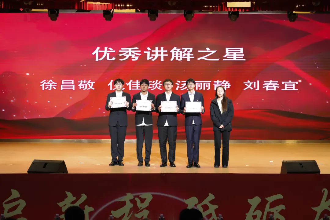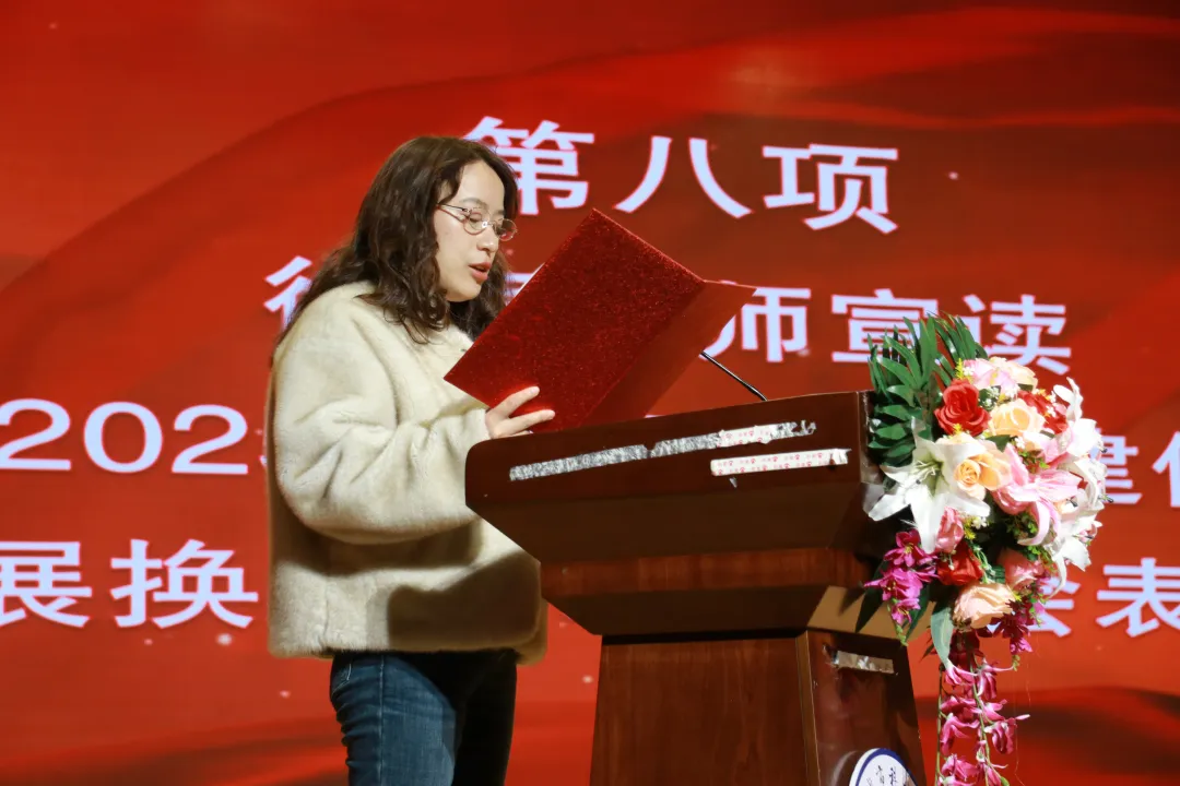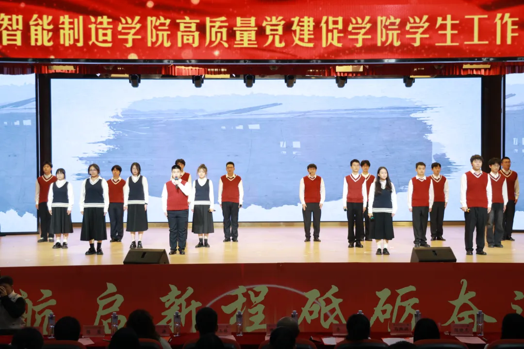 为深入贯彻落实第二十八次全国高校党的建设工作会议精神,深刻认识高校党建工作的新使命新挑战新要求,明确新时代高质量党建对学生工作的引领作用,实现高质量党建引领学生工作高质量发展。2025年11月20日晚,电气工程与智能制造学院于第一学术报告厅开展2025年电气工程与智能制造学院高质量党建促学院学生工作高质量发展工作总结会。电气工程与智能制造学院院长陈进、党总支副书记李宇、副院长张玉林、大学生党建工作中心指导老师马煦玥、学院党总支组织委员徐源、党总支纪检委员陈晓庆、党总支青年委员陈慧、学生第一党支部书记张雪雪、学生第三党支部书记牟凤利及党建工作站指导老师出席会议。电气工程与智能制造学院学生代表以及党建工作站、集成电路创业史陈列馆全体人员参会,本次大会由尹代松,李思静同学主持。 (图1 会议全景) (图2 主持人) 第一篇章 初心铸魂忆征程,薪火赓续显担当 (图3 朗诵表演) 《百年正青春》朗诵表演结束后,主持人尹代松致开场词并介绍领导及嘉宾,接着护旗手迈着铿锵有力的步伐走进舞台中央,参会人员全体起立,奏唱国歌。 (图4-5 全体成员奏唱国歌) 会议伊始,大学生党建工作中心指导老师马煦玥老师上台为本次大会致辞。首先,她回顾电气工程与智能制造学院以党建工作站、集成电路陈列馆为载体,借“三线精神”引领学生工作的成果。接着,介绍工作站夯实党务、开展志愿服务活动、打造“党建促学风”品牌,以及陈列馆在传承红色文化、助力思政建设的作用。最后,她号召师生奋进,助力学生工作发展、培育青年人才,并预祝大会成功。 (图6 马煦玥老师致辞) 紧接着,徐源老师和张院强老师为电气工程与智能制造学院党建工作站第四届骨干及集成电路创业史陈列馆第七届骨干颁发聘书。 (图7-8 颁发聘书) 承前启后,再谱新篇。集成电路创业史陈列馆第七届骨干代表杨洪承发言。首先,他代表陈列馆及学院党建工作站向长期关心支持相关工作的领导、老师和同学表达感谢;接着,他回顾了过去一年陈列馆作为市区两级爱国主义教育基地,在红色文化传播、科研精神传承及情景剧《“芯”征程》展演等方面的成果,同时介绍了学院党建工作站在党务工作、特色品牌活动等方面的成效;最后,他寄语新一届骨干及干事,希望大家接续奋斗根基、秉持进取之心,以坚定信念与务实作风创造新业绩,为事业发展注入新活力。 (图9 学生骨干杨洪承发言) 初心如磐,使命如炬。徐源老师宣读《2024-2025学年高质量党建促学院学生工作高质量发展表彰文件》。随后,陈进院长、张玉林副院长等多位院领导及老师,分别为“优秀部门”“陈列馆优秀骨干”等7类奖项的获得者颁奖,各获奖代表上台领奖并合影,大会氛围庄重热烈。 (图10 徐源老师宣读表彰文件) (图11-17 颁奖仪式) 接力新起点,奋斗正当时。由学生们带来情景剧表演《致青春》,它告诉我们,共产党员的青春,永远与信仰同行,与奋斗共进。这场演出,为此次换届大会烙下了深刻的青春印记,也激励着新老两代党员,在各自的赛道上,共同跑好历史的接力棒。 (图18-19 情景剧表演) 第二篇章 使命聚力启新程,青春筑梦向未来 情景剧《致青春》的精彩演绎落下帷幕,会议随即进入第二篇章。盛一凡老师上台宣读电气工程与智能制造学院第五届党建工作站及集成电路创业史陈列馆第八届骨干名单,正式揭开换届新篇章。随后,电气工程与智能制造学院党建工作站及集成电路创业史陈列馆换届交接仪式顺利进行。 (图20 盛一凡老师宣读骨干名单) (图21 换届交接仪式) 青春寄语,展望未来。第五届党建工作站站长何磊发言,从理论传播、创新实践、组织建设、打造特色品牌四个方面具体讲述了党建工作站未来发展目标,并表示将以初心为舵、以实干为帆,在创新中求突破,在奋进中谋发展。紧接着,全体观看学长学姐的寄语视频,既有经验传承也有殷切期许,让在场同学备受鼓舞。 (图22 党建工作站站长何磊发言) 殷切嘱托,寄予厚望。会议尾声,李宇副书记做总结讲话。她首先代表电气工程与智能制造学院党总支,向受到表彰的先进组织与个人致以热烈祝贺,对电气工程与智能制造学院全体师生致以崇高敬意与感谢之情。回顾了过去党建工作站和陈列馆的工作成果,从“把稳思想之舵,夯实理论基础”“传承红色使命,坚守初心立场”“创新实践锻炼,彰显使命担当”“强化组织凝聚力”“做好梯队建设,传承红色薪火”五方面对新一届学生骨干表达期望。李宇副书记强调要心怀梦想,脚踏实地,勇往直前,不断提升自我素养让青春在不懈奋斗中绽放绚丽之花。 (图23 李宇副书记作总结讲话) 党建引领,聚力前行。本次换届大会既是对电气工程与智能制造学院党建工作站及集成电路创业史陈列馆过往一年工作的全面总结与成果表彰,更是凝聚新力量、绘画新蓝图的动员大会。愿新一届骨干与干事们牢记使命、勇担重任,以昂扬姿态、坚定信念投身学院工作,共同推动学院各项事业高质量发展,书写电气工程与智能制造学院建设的崭新篇章! (图24 合影留念) (马冰冰/文 高雪芹/文 罗裕/图 熊程亿/图 传媒中心 易雪/编辑)