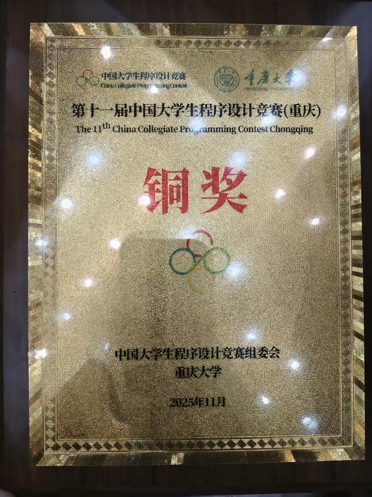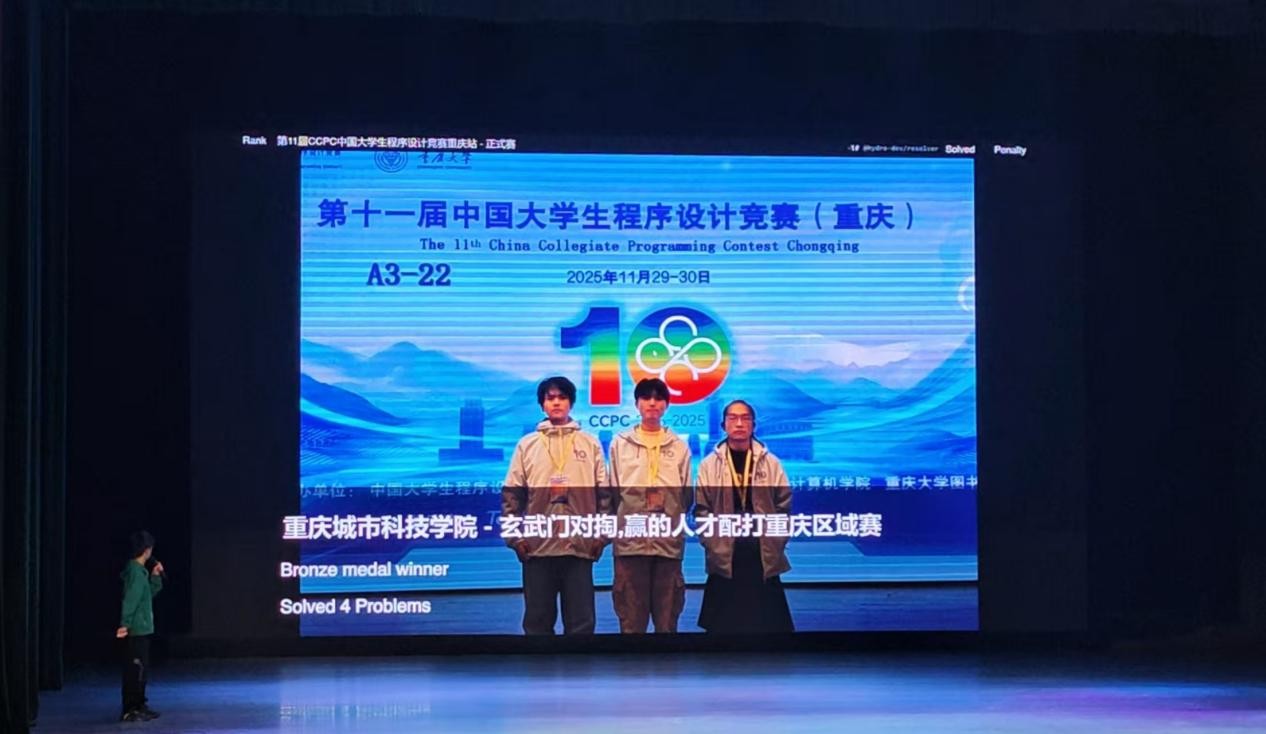 2025年11月30日,第11届CCPC中国大学生程序设计竞赛重庆站在重庆大学科学城校区圆满落幕。作为重庆地区规模最大的国家级程序设计竞赛之一,本次赛事吸引了来自清华大学、北京大学、浙江大学等全国180余所高校的324支队伍、960余名学生同台竞技。学校ballBET贝博BB艾弗森派出的“玄武门对掏,赢的人才配打重庆区域赛”队伍表现亮眼,最终凭借扎实的专业能力与默契的团队协作斩获铜奖,为学校赢得荣誉。 本次竞赛参照国际大学生程序设计竞赛(ACM-ICPC)规则,要求各参赛队伍在5小时内完成13道涵盖逻辑推理、数学建模、算法设计与编程实现的复杂题目。竞赛以正确解题数量为首要排名依据,解题数量相同时,以总用时(含罚时)较短者胜出。赛事不仅考验选手的程序设计语言运用、数据结构掌握与算法分析能力,更对团队协作效率、高压环境下的问题解决能力提出了极高要求。 学校“玄武门对掏,赢的人才配打重庆区域赛”队伍由刘英凯、董铮、吴广平三名同学组成,在颜烨老师的精心指导下,赛前经过数年系统训练——从算法专题突破、模拟赛实战演练到团队分工磨合,逐步夯实专业基础、优化协作流程。比赛当日,面对来自全国顶尖高校的强劲对手,三名队员迅速进入状态,明确分工,三人配合默契、高效联动。 董铮,刘英凯,吴广平 比赛过程中,团队始终保持稳定节奏,从基础题目入手逐步攻克难点,在遭遇思路瓶颈时及时调整策略,通过高效讨论快速找准解题方向。最终,队伍凭借对多道题目的精准解答,成功跻身铜奖行列,展现了学校学子在计算机领域的专业素养与创新潜力。 此次获奖既是对三名队员及指导老师辛勤付出的肯定,也是学校在计算机专业人才培养领域的又一重要成果。近年来,学校高度重视学科竞赛对人才培养的推动作用,通过组建专业指导团队、搭建实训平台、开展常态化竞赛培训等方式,鼓励学生将课堂知识与实践应用相结合,有效提升了学生的算法设计、逻辑推理与团队协作能力。 未来,学校将继续以学科竞赛为抓手,进一步完善人才培养体系,为学生提供更多展示才华、交流学习的平台,助力培养更多适应信息技术产业发展需求的高素质应用型人才,为区域经济社会发展与国家“数字中国”建设贡献力量。(传媒中心 胡乐怡/编辑)