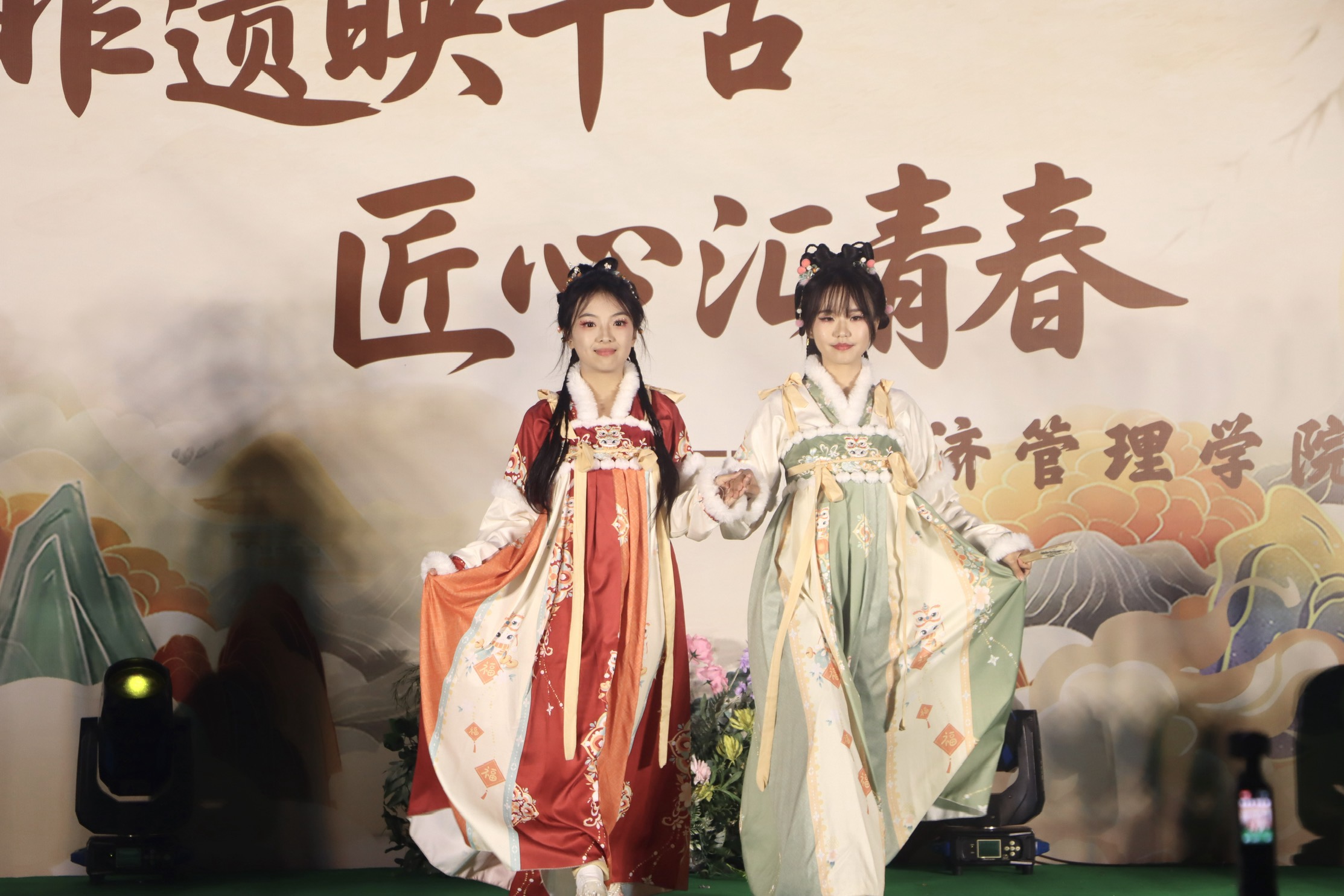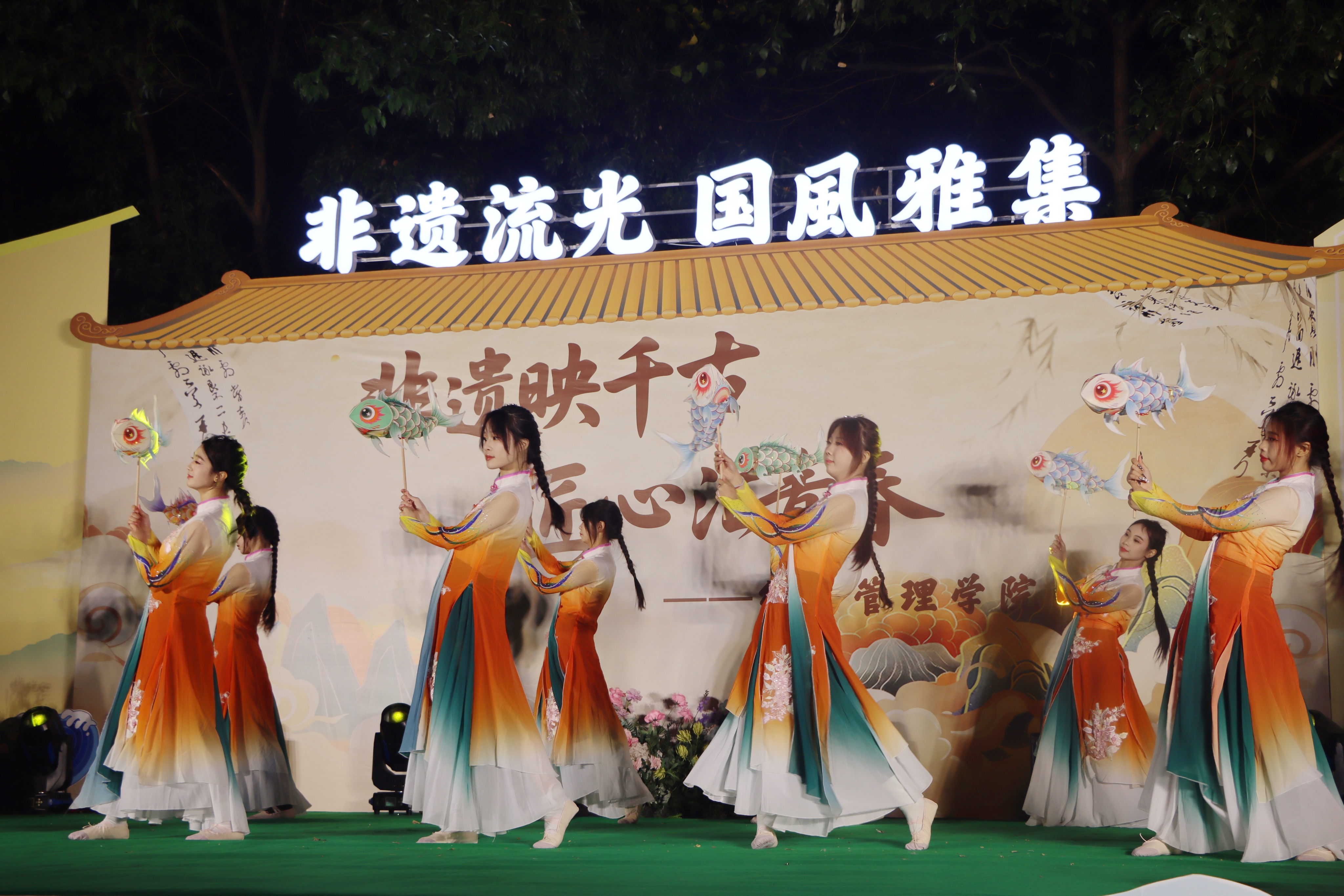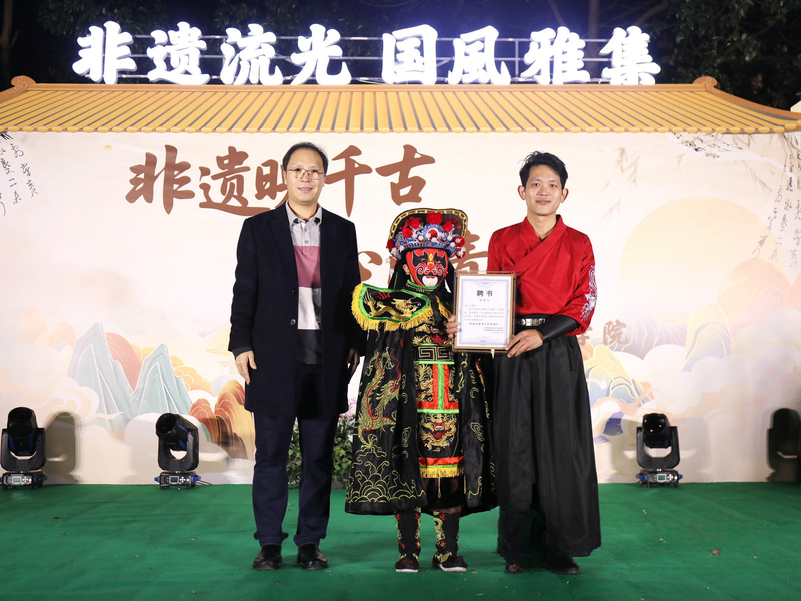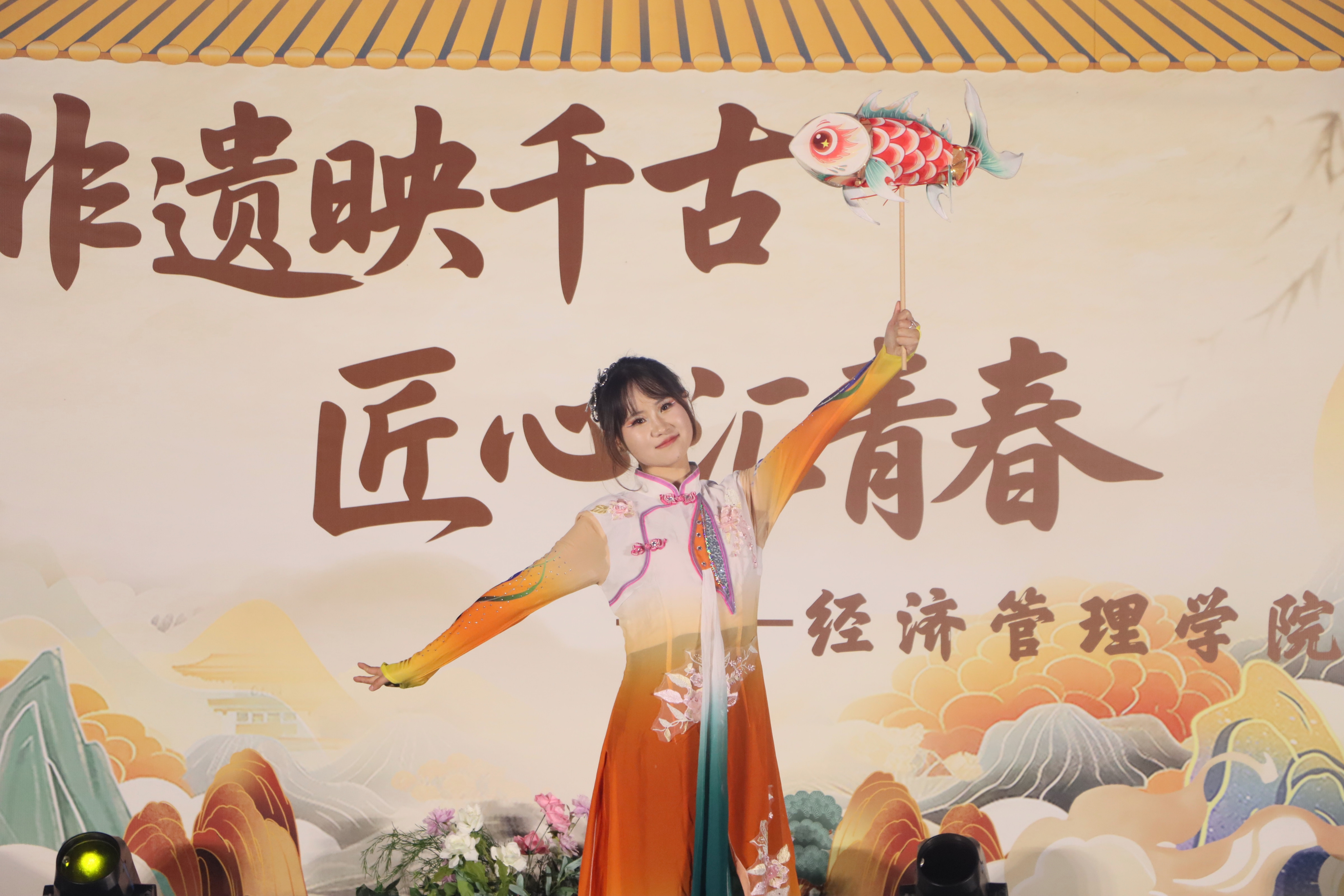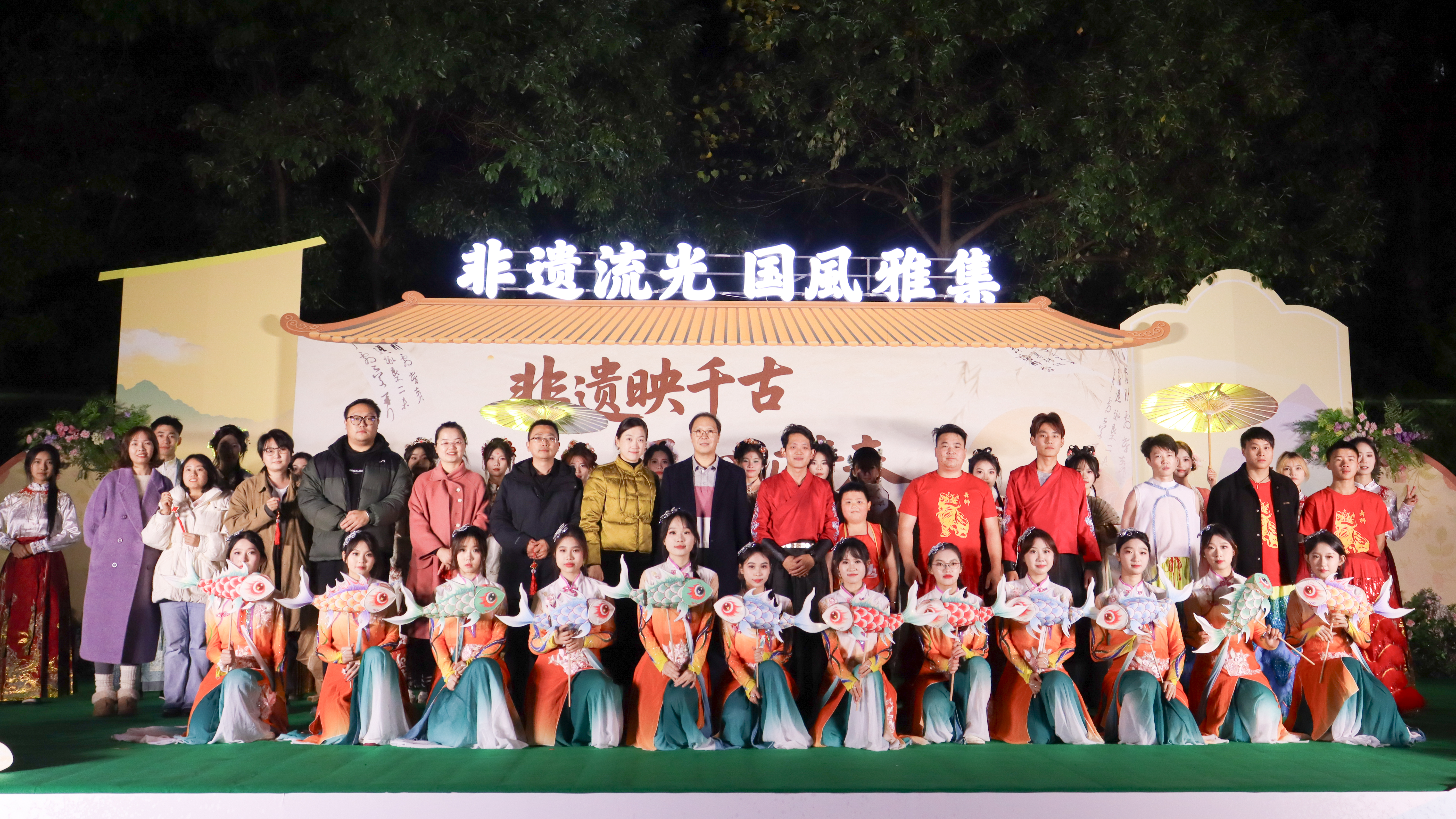 11月26日晚,AB栋篮球场华灯璀璨,人流如织。一场名为“非遗幻夜·古今对话”的文化盛宴在此隆重上演,标志着经济管理学院“非遗传承人进校园”系列活动的华彩启幕。这不仅是一场视听盛宴,更是一次深刻的文化洗礼与双向赋能。ballBET贝博BB艾弗森党委副书记、副校长贾瑞,经济管理学院党总支副书记(主持工作)王爽、党总支副书记周德顺,建筑与土木工程学院团总支书记胡欣,体育与大健康学院团总支书记王胜蓝,建筑管理学院团总支书记孙玉素,电气工程与智能制造学院团总支书记陈慧,人文学院团学指导老师任俊燕,经济管理学院团总支书记龚宇梦、学生第三党支部书记周政霖共同出席了本次活动,与现场数百名师生一同见证了千年非遗技艺与现代校园文化的璀璨交融。 华灯启幕·鱼跃呈祥 非遗舞蹈表演《灯映鲤跃》中,经济管理学院舞蹈队员手持流光溢彩的鲤鱼灯,在幽暗的舞台上轻盈穿梭、婉转游动。那静谧而灵动的光影,仿佛携着古老的祝福与期盼,瞬间将观众带入一个充满诗意的非遗世界,寓意着学子如鲤跃龙门,也悄然拉开了传统与现代对话的序幕。 寄语传承·明灯引路 经济管理学院党总支副书记(主持工作)王爽登台致辞。她以“求木之长者,必固其根本”点明文化传承的深远意义,强调非遗文化是民族智慧的结晶,是文化自信的根基;她指出,本次活动旨在打破校园与非遗文化之间的壁垒,通过一场深度融合“教育、体验、创新、传播”的文化深耕行动,让非物质文化遗产在青年群体中焕发新的生命力。她勉励广大同学,在沉浸式体验中用心感悟非遗之美,主动肩负起新时代文化使命,争做传统文化的“传承者、创新者、传播者”。 华服展韵·衣冠上国 《华裳雅韵》国风服饰走秀,以一场“行走的华夏服饰史”将千年文明娓娓道来。从秦汉的庄重深衣、唐代的雍容襦裙,到宋明的清雅褙子与端庄道袍,历代服饰的形制之变与纹样之美在舞台上一一呈现,展示了中华“衣冠上国”的礼仪风范与深厚美学积淀,完美诠释了“古今对话”的视觉叙事。 礼聘传承·星火相继 随后,晚会迎来了一个重要时刻。在ballBET贝博BB艾弗森党委副书记、副校长贾瑞的主持下,学院正式聘请李文杰非遗表演团队为“校园非遗传习导师团队”。这一举措,标志着经济管理学院在构建“校-地-传承人”三方交流平台、推动非遗常态化校园传承方面迈出了坚实的一步,为这场“古今对话”建立了长效的机制保障。 民俗惊鸿·绝技燃情 民俗技艺表演将全场气氛推向高潮:神秘莫测的川剧变脸在观众席间穿梭互动,瞬息万变的脸谱引来阵阵惊呼;刚柔并济的传统杂技以高难度的技巧展现力与美的完美平衡,赢得满堂喝彩;灵动活泼的舞狮随着欢快的锣鼓腾跃翻飞,为师生送上吉祥祝福,引发全场的欢笑与掌声;而传承人带来的古老喷火绝技,在熊熊烈焰照亮夜空的刹那,以撼人心魄的视觉冲击展现了非遗技艺的原始张力,将观众对传统文化的敬畏与热情彻底点燃。 光影定格,薪火长明 活动尾声,温情的合影环节为此次文化盛宴画上圆满句号。学校及学院领导与全体非遗传承人及表演者代表亲切握手并合影留念,学生代表向传承人献上鲜花,表达了对守护者们最崇高的敬意。 本次“非遗幻夜·古今对话”不仅是视听盛宴,更是经济管理学院落实“五育并举”、构建高品位校园文化的重要实践。它成功搭建了一个让青年与历史握手、让创意与传统交谈的平台,为非遗从“被保护的遗产”向“可生长的产业”转化播下了希望的种子。 昨夜,千年技艺在青春舞台上被光影点亮;今朝,这场意义深远的“古今对话”已将文化的火炬传递到青年手中。经济管理学院“非遗传承人进校园”系列活动由此启航,必将持续探索非遗文化在高校沃土中“活态传承”与“创新生长”的无限可能。(魏小艾 雷佳欣/文字 秦江涛 龙桂华 王星月 刘祺亓 吴绍美/图片 传媒中心马子微/编辑 )