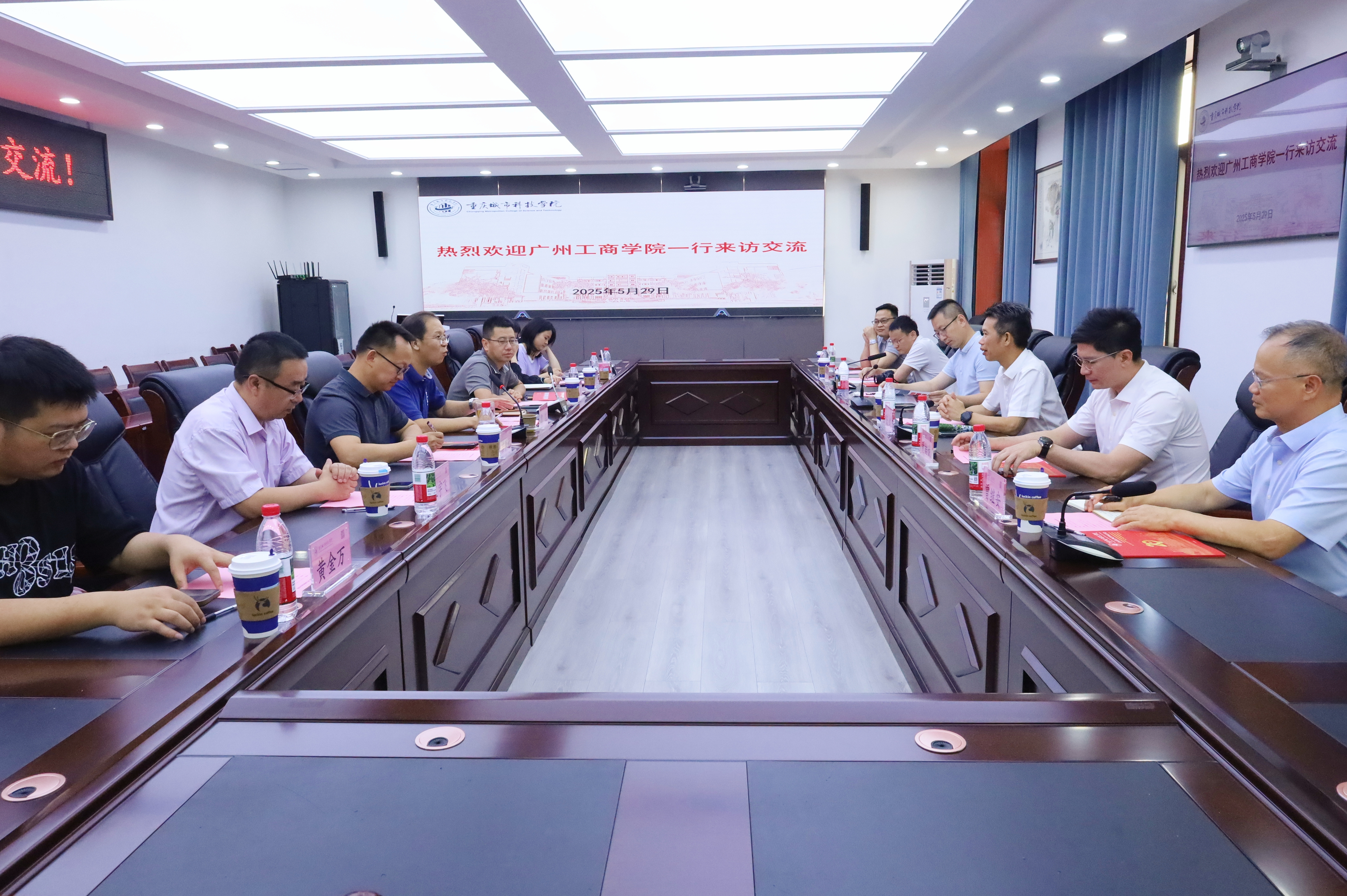 5月29日下午,广州工商学院董事、创新创业教育学院院长陈武,校长助理黄喆诚、邢传国,创新创业教育学院副院长曾继安一行来访学校调研交流。学校党委副书记、副校长贾瑞,学生处、教务处、创新创业学院相关负责人及教师热情接待并参加座谈交流。 座谈会上,贾瑞代表学校对广州工商学院一行的来访表示热烈欢迎,并简要介绍了我校的办学基本情况、发展历程以及近年来在学科建设、人才培养、社会服务等方面的做法与成效。 广州工商学院陈武对学校的热情接待表达了诚挚的谢意,对学校近年来在各领域所取得的成绩表示高度赞赏,希望通过此次交流,进一步加深两校之间的相互了解,实现相互启发、共同提升的目标,为推动两地两校协同服务地方经济社会高质量发展贡献更多力量。黄喆诚对该校的办学历程、党建工作成效、整体发展情况等进行了具体介绍。 座谈交流中,双方围绕如何更好地适应粤港澳大湾区、成渝地区双城经济圈等区域地方经济发展需求展开深入探讨,聚焦创新创业教育体系构建、课程建设规划、实践平台搭建、赛事组织管理、产教融合实施路径等内容,双方人员各抒己见、充分交流,分享了各自学校的宝贵经验与创新举措。 交流结束后,广州工商学院一行实地参观了集成电路创业史陈列馆、大学生创业园、大经管生态园实验实训基地。(传媒中心 屈海浪/编辑)