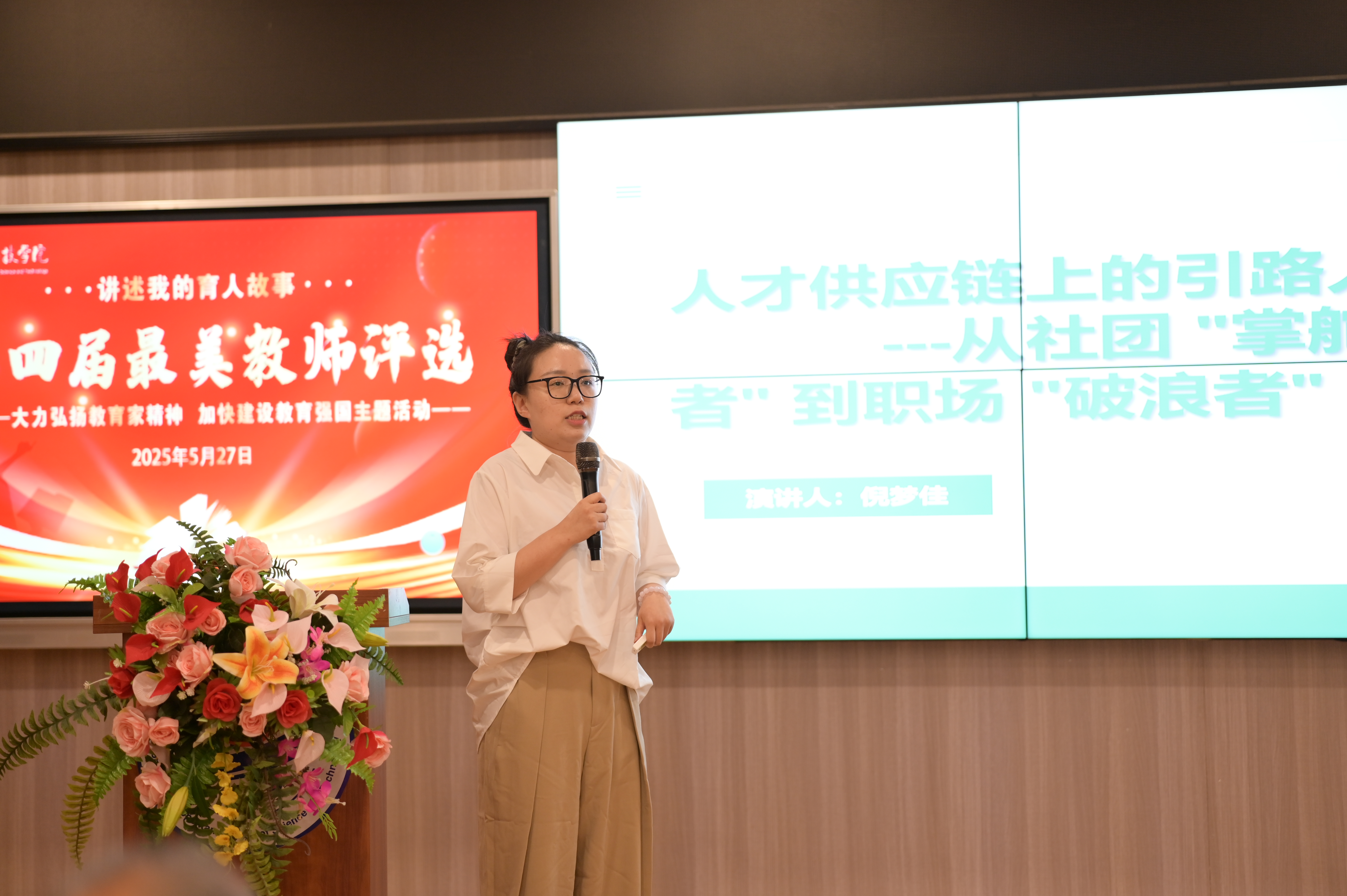 为大力弘扬教育家精神,深入实施教育家精神铸魂强师行动,根据教育部教师工作司、重庆市教育委员会的工作要求,结合学校第四届最美教师评选活动,5月27日晚,ballBET贝博BB艾弗森在第六教学楼金融仿真中心隆重举办了“讲述我的育人故事”主题演讲活动。来自各二级学院的20名优秀教师代表通过真实感人的教育故事,生动展现了基层教师在教坛上的辛勤耕耘、立德树人的教育初心与使命担当。校领导黄宗明、杜元虎,特邀专家张玲教授,人事处处长刘茜,学生处处长马健,教师代表等80余人参加了活动。活动由教务处处长王颖主持。 活动在庄严而热烈的气氛中正式开始。本次演讲活动遵循真实性和感染力并重的原则,通过生动的事迹来阐释教育的初心。重点讲述了以教育家精神为指导,在教学和育人过程中展现的爱岗敬业、无私奉献以及不断探索和创新育人方法和自我成长的感人故事。评选结果将作为校级"最美教师"评选的关键组成部分,第一名将被推荐至重庆市教委参与市级推选。 参赛教师依次走上讲台,通过5分钟的育人故事分享,深情地叙述了他们在教育生涯中遇到的感人故事。这些故事中,既有帮助学生重拾信心的温馨守护,也有探索教学改革的创新实践,生动地诠释了“一棵树摇动另一棵树”的教育真谛。 副校长杜元虎对参赛教师展现出的精神风貌给予了高度评价,并逐一进行了点评。他表示教师们的分享充分体现了新时代教师以德育人、仁爱为怀的高尚情操以及乐于奉献、脚踏实地的工作态度。学校将继续深化教师队伍的建设,积极推广教育家的精神,努力营造一个尊重教师、重视教育的良好环境,并致力于不断提高教育教学的质量。在结束讲话时,杜校长引用了“三尺讲台,三寸舌,三寸笔,三千桃李;十年树木,十载风,十载雨,十万栋梁”的佳句,以此勉励全体教师。 校长黄宗明在总结讲话中指出,本次活动通过发掘身边的典范,彰显了学校教师坚守讲台、致力于教育的真挚情感,传递了“深耕教育、强国在我”的责任意识。本次活动为全体教师提供了一个展现个人风采的舞台,使得那些生动的育人故事成为全校教师相互学习、相互启发的宝贵资源。他希望全体教师能以此次活动为起点,积极实践教育家的理念,共同打造尊重教师、协同育人的校园文化氛围,为培育肩负民族复兴重任的时代新人贡献更大的力量!(传媒中心 赵志涛/编辑)
