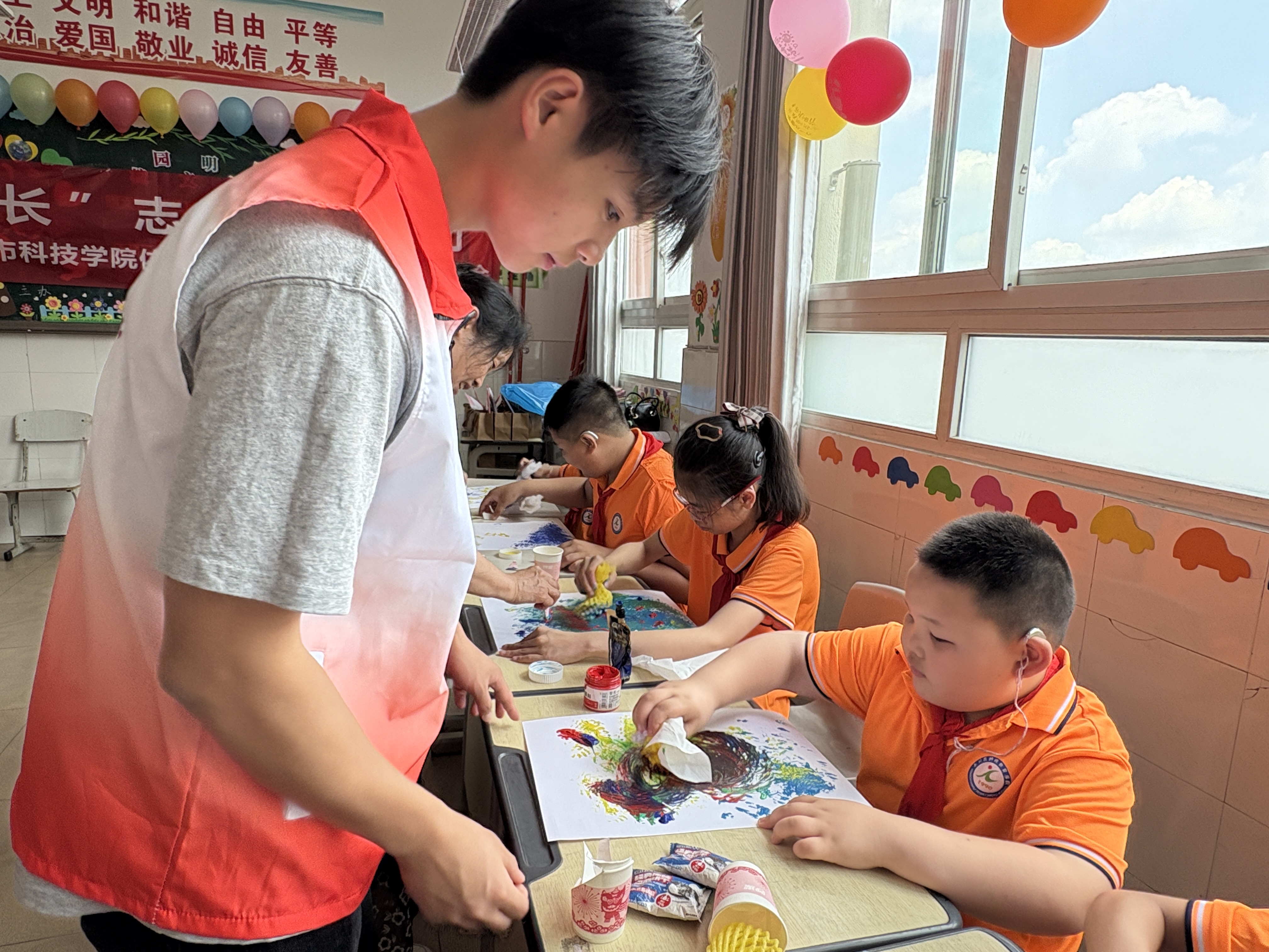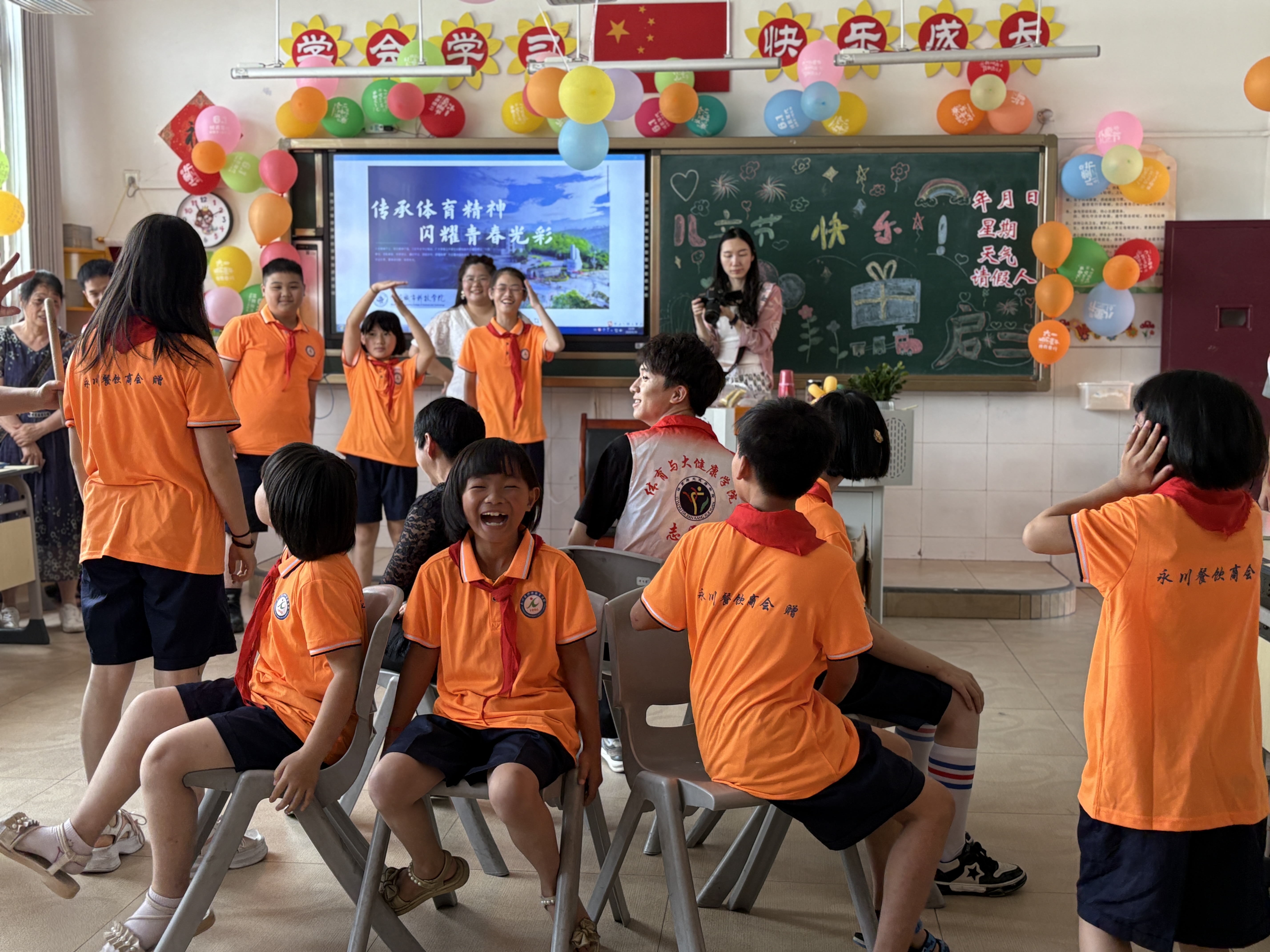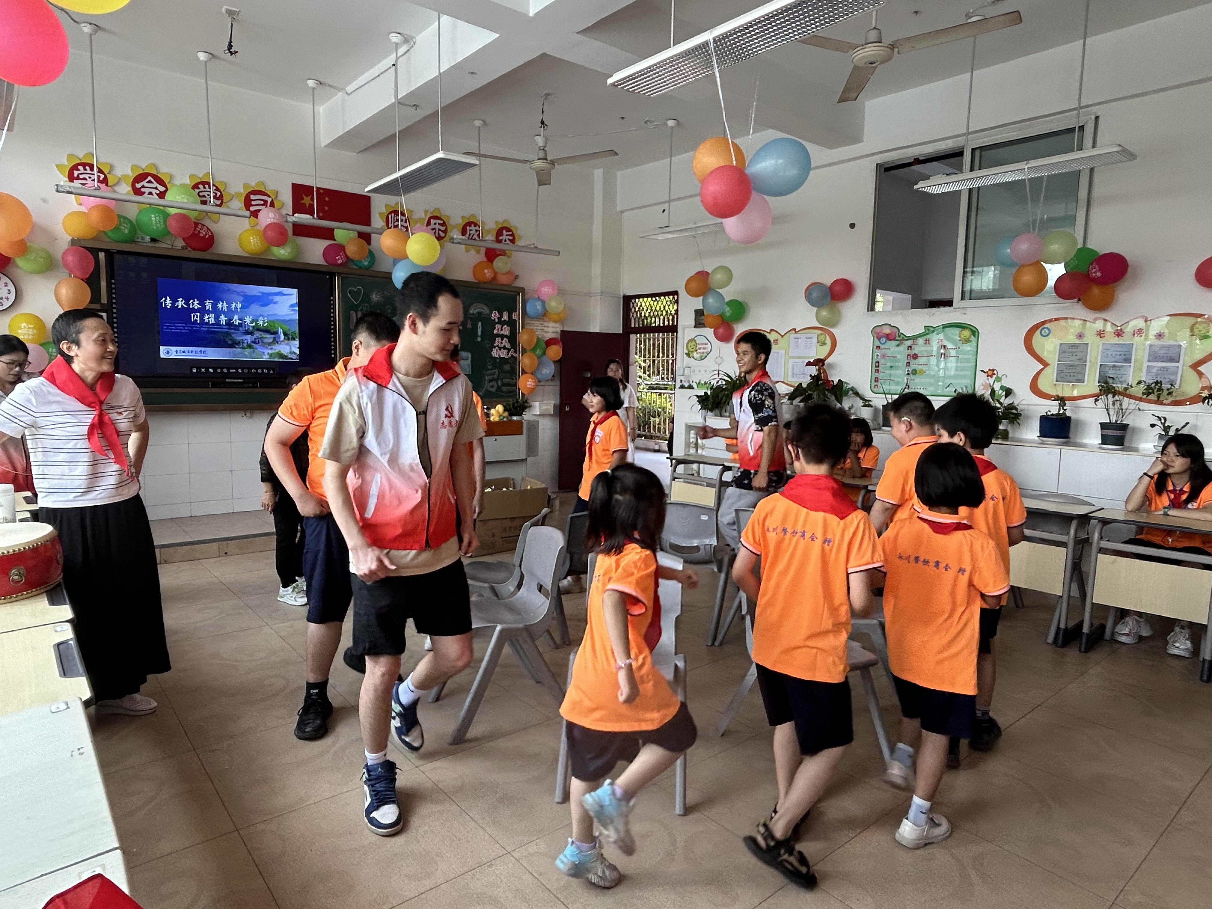 为积极响应国家“十四五”特殊教育发展提升计划,践行习近平总书记关于“关心特殊教育,支持特殊儿童全面发展”的重要指示精神。2025年5月29日,体育与大健康学院党组织“萤火之光”志愿服务队前往重庆市永川区特殊教育学校开展“童心同行·筑梦成长”主题志愿服务活动,以专业力量点亮特殊儿童成长之路。 舞狮点睛,燃动童真 体育与大健康学院坚持“党建+传统文化”相结合,致力于将体育专业特色与传统文化向外传播。在六一儿童节来临之际,体育与大健康学院党总支“萤火之光”志愿服务队的志愿者们为永川区特殊教育学校的孩子们带来的精彩舞狮表演瞬间点燃现场气氛。威武灵动的狮子伴随着铿锵的锣鼓声翻腾跳跃,孩子们目不转睛,脸上洋溢着惊喜与兴奋。这份充满活力的传统文化展示,不仅传递了节日的祝福,更在孩子们心中播下了欢乐与好奇的种子。 欢乐律动,活力飞扬 体育与大健康学院党总支充分发挥学院运动康复专业优势,巧妙将感觉统合训练原理融入游戏设计。精心组织的“抢板凳”游戏。在欢快动感的音乐节奏中,孩子们在志愿者的引导与保护下,积极参与,快乐奔跑。游戏不仅锻炼了孩子们的反应速度、听觉注意力和身体协调性,更在激烈的角逐与友好的互动中,有效提升了他们的动态平衡能力和社交参与感,现场笑声、欢呼声、加油声此起彼伏,气氛热烈非凡。 妙笔生彩,创意表达 在充满艺术气息的“手掌画”环节,孩子们迎来了自由表达的天地。志愿者们准备好缤纷的颜料和画纸,鼓励孩子们伸出小手,蘸上喜欢的色彩,在画布上尽情印拓、挥洒创意。小手掌化作蝴蝶翅膀、花朵叶片、奇幻星球……一幅幅充满童真想象力的作品跃然纸上。这个过程不仅锻炼了孩子们的精细动作能力和色彩感知力,更让他们在无拘无束的创作中收获了自信与成就感,充分展现了艺术疗愈的魅力。 甜蜜共享,温暖传递 活动尾声,志愿者们为每一位小朋友送上了精心准备的小零食礼包。接过装着美味点心的礼物,孩子们的脸上绽放出纯真灿烂的笑容。这份甜蜜的惊喜,不仅是对孩子们积极参与的鼓励,更承载着志愿者们满满的关爱与祝福。礼轻情意重,温馨的派送环节为本次活动画上了一个甜蜜而温暖的句号。 本次活动是体育与大健康学院“党建+群建”的一次深化实践,志愿者们充分发挥专业特长,以高度的社会责任感投身特殊教育场景,通过体教融合切实服务特殊儿童成长需求,不仅传递了社会关爱,更在服务实践中锤炼了自身本领,深刻践行了新时代青年关爱弱势群体、奉献社会的核心价值。体育与大健康学院党总支将持续点亮“星火之光”,以专业之力守护成长,以实践之炬温暖童心,为促进教育公平与社会和谐贡献青春力量!(传媒中心 胡甜甜/编辑)