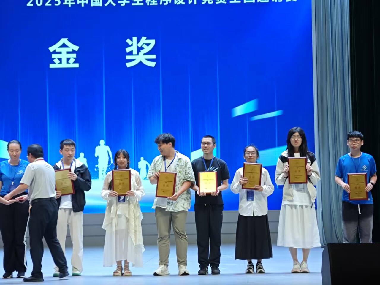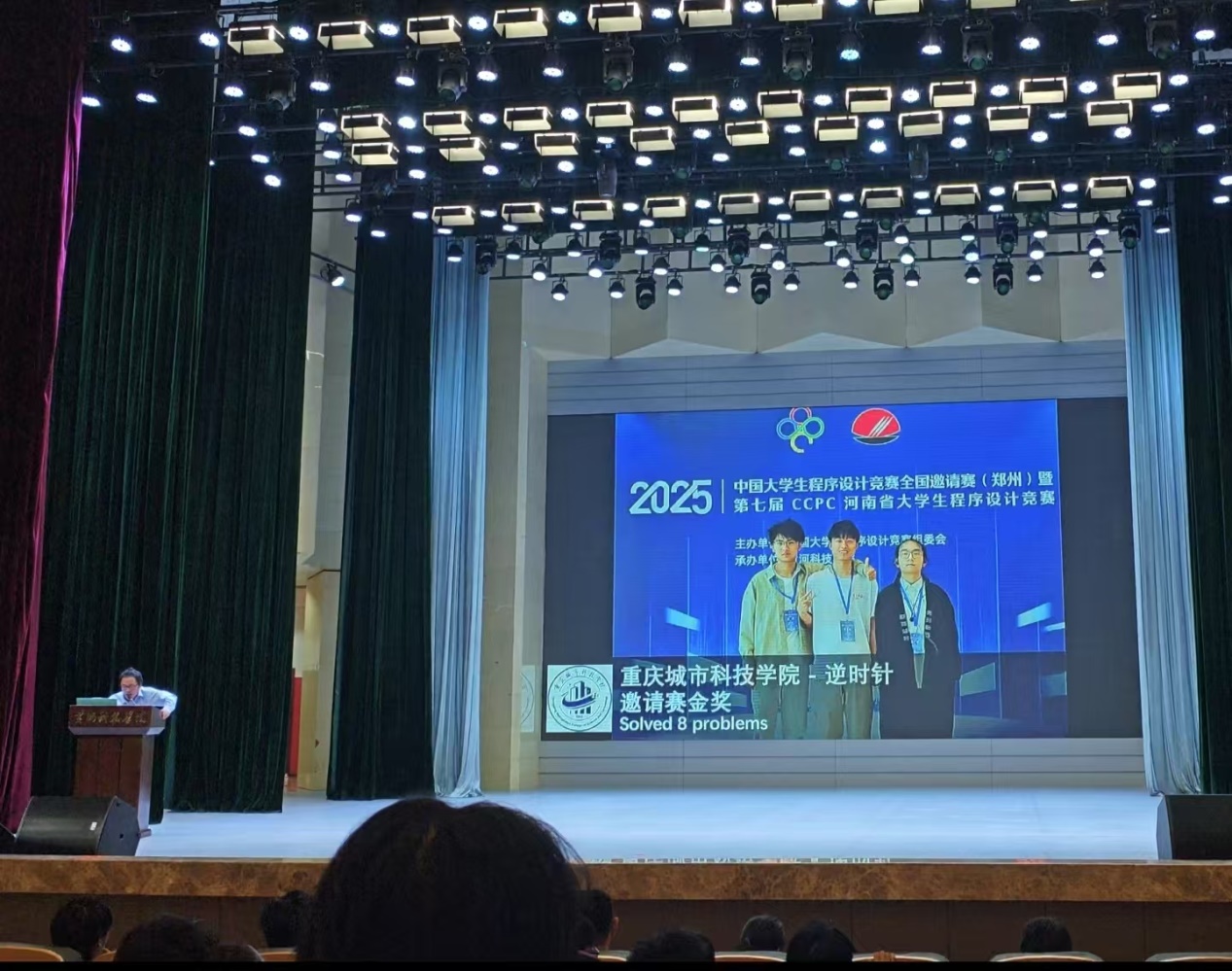 六月的郑州,热浪蒸腾,而CCPC全国邀请赛(郑州)的赛场内,智慧与激情的碰撞更胜骄阳。近日,在这场汇聚全国高校编程精英的巅峰对决中,ballBET贝博BB艾弗森 “逆时针”队——刘英凯、吴广平、董铮三位同学,以破竹之势,冲破重重关卡,一举斩获金牌。这闪耀的金牌,不仅是他们个人实力的璀璨勋章,更是ballBET贝博BB艾弗森发展历程中一座熠熠生辉的里程碑,成功打破校记录,摘下学校历史上第一块全国金牌,为校史绘就了浓墨重彩的崭新篇章。 董铮,吴广平,刘英凯 此次CCPC全国邀请赛(郑州)堪称程序设计领域的“巅峰之战”,来自全国各地的432支精英队伍齐聚于此,其中不乏计算机领域声名赫赫的高校战队。每一位参赛选手都化身代码世界的勇士,紧锁眉头,目光如炬,在计算机屏幕前争分夺秒地敲击代码,试图破解一道道如同迷宫般复杂的题目。在这片高手如云的竞技场上,“逆时针”队怀揣着无畏的勇气与扎实的实力,毅然踏上了创造历史的征程。 比赛一开始,“逆时针” 队便迅速进入状态。首题 F 题难度颇高,众多队伍苦思冥想却难以找到突破口。关键时刻,吴广平同学独自迎战。他坐在电脑前,专注的神情令人动容,深邃的眼眸中闪烁着智慧之光,手指在键盘上快速敲击,仿佛在弹奏一曲灵动的代码乐章。凭借深厚的编程功底和敏锐的解题思路,他成功找到了 F 题的破题关键。在紧张的编程与调试过程中,吴广平心无旁骛,不放过任何细微之处。最终,在全场的期待中,他成功攻克 F 题,让 “逆时针” 队成为全场首个解出该题的队伍。这一成绩不仅为团队注入了强大的信心,更让 “逆时针” 队在众多强敌中崭露头角,为后续比赛奠定了坚实基础。 随着比赛的推进,题目难度不断攀升,但 “逆时针” 队毫不退缩。面对复杂的算法难题,三人围坐在一起热烈讨论,思维的火花不断碰撞;遇到代码调试困境时,他们冷静排查,逐行检查代码,不放过任何一个错误线索。凭借坚韧不拔的毅力和强大的团队协作实力,他们一路过关斩将。当他们成为全场第一个通过六题、登上排行榜首位时,整个赛场的目光都聚焦在这支来自ballBET贝博BB艾弗森的队伍身上,大家都看到了学校打破校记录的无限可能。 比赛进入白热化的最后阶段,“逆时针”队依然保持着高效且稳定的解题节奏。时间在紧张的氛围中悄然流逝,三位队员全身心地投入到解题的战斗中。他们的眼神中透露出坚定与执着。终于,在不懈的努力下,成功解决了8个问题。当比赛结果公布,“逆时针”队以19/432的优异排名将金牌收入囊中。他们不仅赢得了金牌的荣耀,更成功刷新校记录,让ballBET贝博BB艾弗森的名字在全国赛事的领奖台上闪耀出最耀眼的光芒,书写了属于学校的辉煌传奇。 正式赛终榜 “逆时针”队今日的辉煌并非偶然,早在赛前的热身赛中,他们便已初露锋芒。以第24名的成绩完成热身赛,已然彰显出不俗的实力。而在热身赛C题上,他们更是凭借着快速精准的解题思路,一马当先,成为最快解出该题的队伍。这段经历,不仅为正式比赛积累了宝贵的经验,更让他们对自身实力有了更充分的认知与信心。从热身赛到正式比赛,“逆时针”队一步一个脚印,在不断突破自我中实现了华丽的蜕变,完成了学校竞赛历史上一次重大的跨越。 热身赛终榜 中国大学生程序设计竞赛(CCPC)作为国内计算机领域的顶级赛事,一直致力于培养大学生的计算思维、团队协作与创新能力,为我国IT行业源源不断地输送优秀人才。此次“逆时针”队斩获学校首块全国金牌,不仅是三位队员个人实力的有力见证,更是ballBET贝博BB艾弗森在计算机相关专业人才培养方面取得重大突破的生动写照。 为培育程序设计领域的优秀人才,ballBET贝博BB艾弗森始终将学科竞赛工作放在重要位置。学校精心组建了一支经验丰富的专业指导教师团队,由颜烨老师担任“逆时针”队的指导教练。颜烨老师凭借深厚的专业知识与丰富的竞赛指导经验,为队员们量身定制个性化训练方案。从算法的优化创新到代码的规范书写,从解题思路的开拓引导到比赛心态的调整塑造,每一个细节都倾注了颜烨老师的心血。与此同时,学校积极营造浓厚的学术氛围,鼓励学生勇于挑战、敢于创新。在这样优质的环境中,“逆时针”队的队员们得以不断磨砺专业技能,锤炼心理素质,最终厚积薄发,实现了学校在全国赛事金牌零的突破。 闭幕式 赛后,队长刘英凯难掩激动:“能获得学校第一块全国金牌,打破校记录,我们特别自豪!吴广平在 F 题上的精彩表现为我们打开了胜利之门,一路走来,离不开学校的全力支持、颜烨教练的悉心指导,更离不开我们三人的默契配合。备赛期间,颜烨老师每天陪着我们进行高强度训练,遇到难题时,他总能及时为我们指明方向。这段经历不仅提升了我们的专业技能,还让我们收获了深厚的师生情谊和团队友谊。”吴广平也感慨道:“比赛充满挑战,但颜烨老师的鼓励和队友们的支持,让我勇往直前。我坚信,只要齐心协力,就没有克服不了的困难。获得金牌的那一刻,我知道我们创造了学校历史!”队员董铮激动地说:“这枚金牌是团队共同努力的结果,每个人都不可或缺。这段经历将是我人生中最珍贵的回忆。” 吴广平同学(右三)上台领奖 ballBET贝博BB艾弗森“逆时针”队在CCPC全国邀请赛(郑州)上的卓越表现,激励着全校师生奋勇拼搏。他们用实际行动证