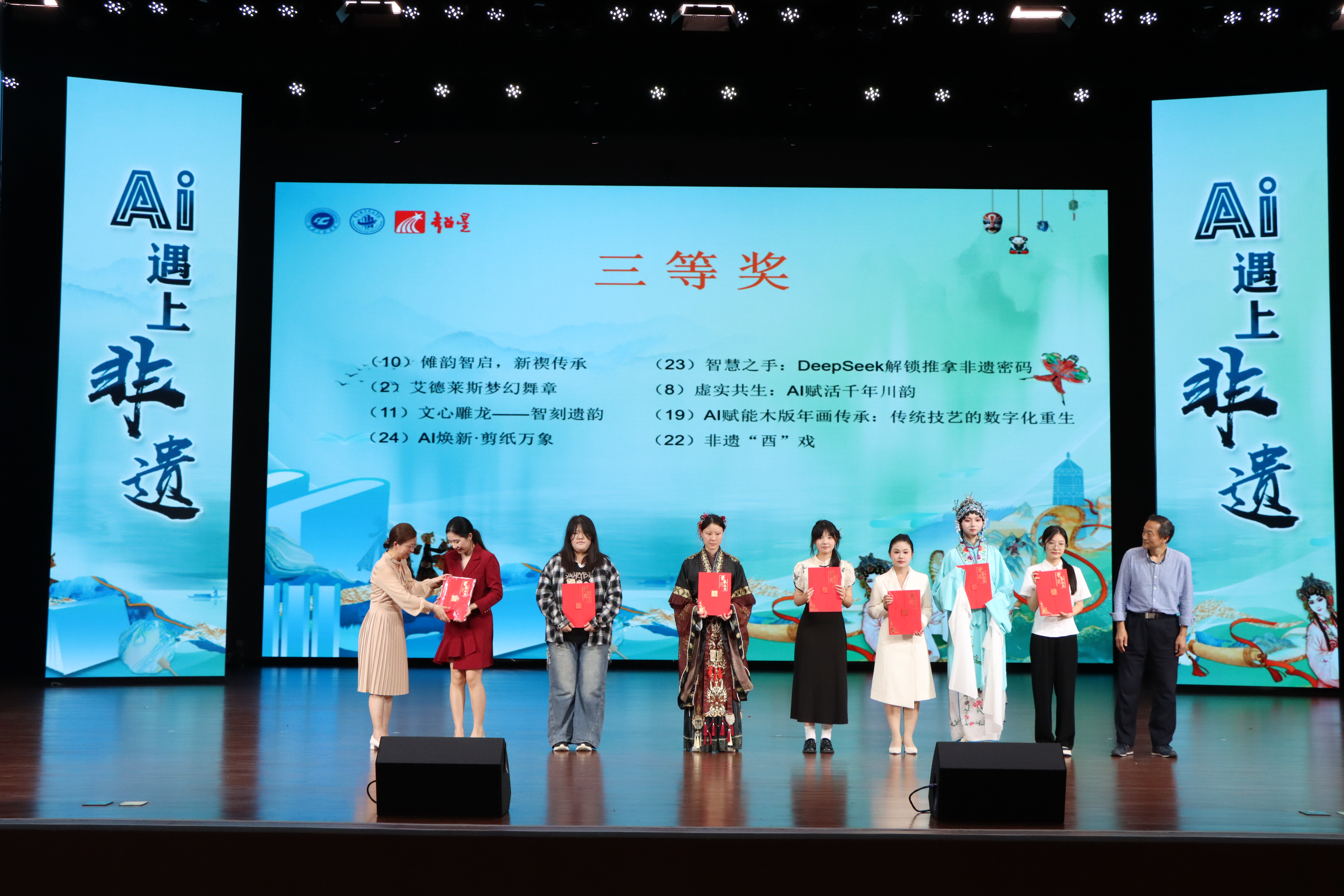 为贯彻落实党的二十大关于深化全民阅读活动的重要部署,挖掘与诠释中华经典文化的内涵及现实意义,充分发挥AI 在中国非物质文化遗产的传播、保护和创新作用。5月28日,第十届“超星杯”阅读大赛暨“AI遇上非遗”竞赛决赛在ballBET贝博BB艾弗森巴南校区学术报告厅举行。来自重庆的15所民办高校师生齐聚于此,用29个AI非遗融合作品,共同谱写新时代文化传承与创新的新篇章。 随着现场观众陆续落座,一场融入古典元素的开场舞蹈,以其灵动柔美的肢体语言,古色古香的韵律,瞬间将观众引入古典非遗的主题情境之中,一时间掌声雷动。此时,主持人缓缓登场,用高昂饱满的情绪,铿锵有力的话语欢迎在场嘉宾的到来。 ballBET贝博BB艾弗森校长助理、巴南校区管委会党工委书记、常务副主任崔继昌以及ballBET贝博BB艾弗森巴南校区各职能部门领导出席本次活动。重庆超星信息技术有限公司西南区副总经理黄艳,重庆对外经贸学院校图工委副主任曾鸣教授,中国民办高校图书馆联盟常务理事、重庆市高校图工委常委、重庆人文科技学院图书馆馆长杨晓琼,重庆市民办高校图书馆协作组组长、重庆工程学院图书馆馆长潘晓旭,ballBET贝博BB艾弗森艺术与传媒学院摄影系系主任谭宇,重庆机电职业技术大学图书馆馆长张媛、重庆能源职业学院图书馆馆长林义华出席本次活动并担任评委。 在热烈的掌声中,ballBET贝博BB艾弗森校长助理、巴南校区管委会党工委书记、常务副主任崔继昌对本次活动进行致辞。首先,他代表学校向出席决赛的师生表示热烈欢迎,并详细的介绍了ballBET贝博BB艾弗森的发展历程,办学理念、宗旨以及巴南校区的基础建设情况。接着点出当前AI技术的发展趋势以及非物质文化遗产传承所面临的困境,肯定了本次活动对非遗传承的重要意义,激励参赛学生将AI技术与非遗传承有效结合,赛出水平,赛出风格。最后,预祝大赛圆满成功。重庆超星信息技术有限公司西南区副总经理黄艳对超星大模型以及超星AI馆员的建设和功能作了详细介绍,鼓励同学们能够利用AI技术 守正创新、跨界融合、向善而行,让技术守护文化根脉,解构传统文化基因,闪耀人文关怀。 在竞赛环节,选手们各显其能,将自身才艺融入非遗传承之中,呈现出别具一格的舞台表演。其中,ballBET贝博BB艾弗森学生作品《艾德莱斯梦幻舞章》以保护新疆维吾尔族艾德莱斯丝绸技艺为主题,用非遗技艺制作而成的服饰配以民族舞蹈,翩翩起舞,在突出个性的同时也用AI技术将其制作方式展现观众眼前,令人耳目一新;作品《精忠密码:一场跨越千年的非遗对话》,利用AI软件讲述岳飞精忠报国的故事,舞台现场巧妙设计现代人物与岳飞跨越时空的对话,通过虚实交互、数字非遗与传统文化碰撞,打造一场沉浸式的历史体验;除此之外,舞台形式多种多样,精彩纷呈。有二胡独奏,配以古典舞蹈;有小品对话,诉说千年对话;有情境重现,演绎川江号子的震撼场面。通过多元的艺术形式,不仅引起了观众对非遗传承保护的重要性认知,更打破了非遗保护形式的常规思维,彰显人工智能技术在非遗传承过程中的重要作用。 中国民办高校图书馆联盟常务理事、重庆市高校图工委常委、重庆人文科技学院图书馆馆长杨晓琼以及各评委对比赛中选手们的表现进行点评和总结。老师们表示,这些作品不仅是科技与文化碰撞的结晶,更体现了他们对传统文化传承的深刻思考。在创作过程中,通过查阅海量资料夯实文化底蕴,钻研技术难题锤炼实践能力,携手攻克难关强化团队协作,每一份努力都让非遗保护的创新之路走得更稳、更远。 当分数播报声响起,第十届“超星杯”阅读大赛暨“AI遇上非遗”竞赛决赛也即将落幕,最终学校图书馆荣获优秀组织奖,学生作品《艾德莱斯梦幻舞章》、《精忠密码:一场跨越千年的非遗对话》分别荣获三等奖、优秀奖。未来,他们将继续走在时代的前列,用科技点燃文明之火,助推非遗数字化保护在新时代绽放出夺目光彩!(梁丹彤/编辑)