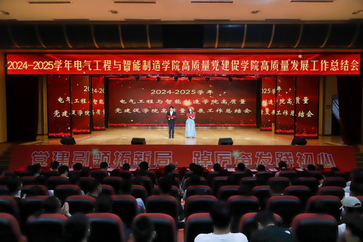 党建引领拓新局,踔厉奋发践初心——电气工程与智能制造学院举行2024-2025学年“高质量党建促学院工作高质量发展”工作总结会 为深入贯彻落实第二十八次全国高校党的建设工作会议精神,扎实推进高校党建与事业发展深度融合。6月19日晚,电气工程与智能制造学院在第一学术报告厅顺利召开2024-2025学年“党建引领拓新局,踔厉奋发践初心”电气工程与智能制造学院高质量党建促学院高质量发展工作总结会。电气工程与智能制造学院院长陈进、常务副院长潘银松、党总支副书记李宇、党总支委员、各系(副)主任、各学生支部(副)书记以及电气工程与智能制造学院师生代表参会,特邀重庆城市科技学院党委委员、副校长杜元虎出席会议。本次会议由林子洢,李俊臣主持。 (图1 会议全貌) 护旗手以坚定有力的步伐护送国旗行进至舞台,全体参会人员肃立致敬,齐声高唱国歌,大会在雄壮激昂的旋律中拉开帷幕。 (图2 展旗) 会议伊始,由ballBET贝博BB艾弗森党委委员、副校长杜元虎为本次大会致辞。他表示,在过去一年里,电气工程与智能制造学院以习近平新时代中国特色社会主义思想为指导,紧扣“为党育人、为国育才”使命,着力构建“党建+”工作模式,在基层党组织建设、思政育人、教学科研、专业建设等领域取得显著成效。同时,也希望电气工程与智能制造学院全体师生秉持“功成不必在我,功成必定有我”的使命担当,以饱满的热情、坚定的信念,共同推动学院学生工作向更高质量迈进,为党和国家培育更多堪当民族复兴重任的时代新人! (图3 杜元虎校长致辞) 第一篇章:党建聚力创辉煌,同心逐梦再出发。 全体人员观看党建工作总结回顾视频,视频中系统展示了学院在强化政治引领、夯实组织根基、推进党建业务融合等方面的实践探索。 随后由教师代表叶博老师发言,他首先衷心感谢学校提供的平台和同事以及学生的支持。他谈到入职两年来,坚持以研促教,以赛促学,培养学生创新能力与团队精神的经验和体会,要明确目标、善用平台、超越奖项价值、坚持到底、注重细节。“心所致,梦必达”,他表示未来将继续与学生们在科研竞赛中探索前行,为学校发展贡献力量。 (图4 叶博老师发言) 接着由学生代表刘练同学发言,他从大学生活、科研竞赛、志愿服务三个维度展开汇报。他谈到在大学生活中,注重规划与实践;在科研竞赛方面,夯实专业基础、关注学术前沿;在志愿服务中拓宽视野、培养社会责任感。最后他祝愿大家都能在追求卓越的道路上坚定前行,用智慧和汗水书写属于自己的精彩人生! (图5 刘练同学发言) 第二篇章:党旗领航拓新篇,勠力同心向未来。 朗诵诗《青春跟党走》,用饱含激情的声音表达了听党话、跟党走的坚定信念。 (图6 朗诵表演) 对标榜样,担当作为。陈进院长宣读《2024-2025学年“党建引领拓新局,踔厉奋发践初心”电气工程与智能制造学院高质量党建促学院高质量发展工作总结表彰文件》,并进行颁奖仪式。 (图7 陈进院长宣读表彰文件) (图8-14 颁奖仪式) 锚定新篇新局,践行责任担当。会议最后,李宇书记作总结发言。她表示学院将以此次总结会为新起点,持续深化党建与教育教学、学风建设、就业指导等工作的深度融合,着力打造“党建引领、品牌带动、协同育人”的工作格局,希望全体师生坚定理想信念,筑牢精神根基;深耕学业实践,练就过硬本领;勇担创新使命,激发创造活力,以高质量党建引领学院事业高质量发展,为培养德智体美劳全面发展的社会主义建设者和接班人贡献力量。 (图15 李宇书记总结) 忆往昔峥嵘路,展未来锦绣图。此次总结会既是对学院党建工作和中心工作的阶段性回顾,更是对未来发展的谋篇布局。下一步,电气工程与智能制造学院将继续秉持“党建引领拓新局”的工作理念,踔厉奋发、勇毅前行,努力书写新时代学院党建与事业发展的崭新篇章。 (图16 合影留念) (电气工程与智能制造学院 马滢滢 陈星羽/文)(梁丹彤/编辑)