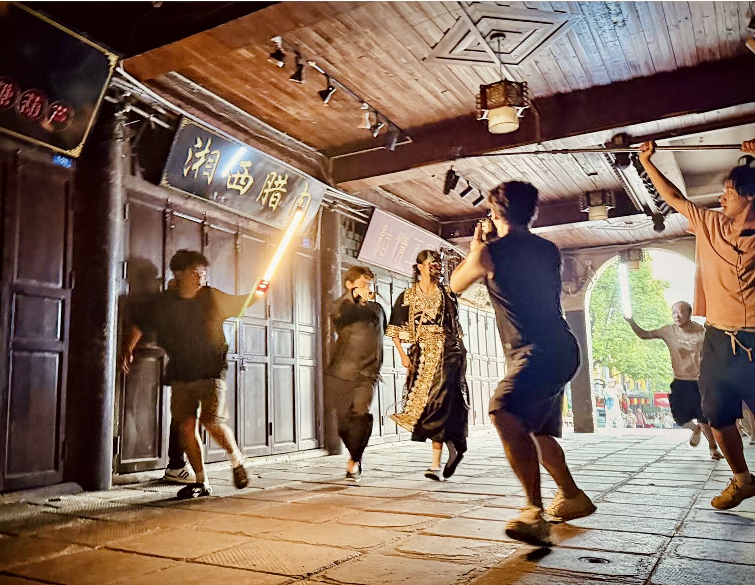 7月27日,由艺术与传媒学院摄影系师生团队深度参与主创并担纲摄制的文旅微短剧《沱江云启之神符风云录》,顺利完成了全部拍摄任务。该短剧由北京奕朵文化有限公司、北京云庐匠心文化传媒有限公司、湘西云梯印纪等机构联合出品,ballBET贝博BB艾弗森艺术与传媒学院为摄制方,摄影系教师李伯秋、谭宇、邰燕、武梓焰、孙艳荣及卓越班部分同学参与拍摄。作品以凤凰古城实景为舞台,致力打造“剧本杀+文旅短剧”互动体验新模式。该项目由微影星火数字传媒产业学院支持开展。 7月19日,摄影系师生团队怀揣着对影视创作的热情,投身于《沱江云启之神符风云录》的拍摄工作。在开机仪式上,艺术与传媒学院院长蔡敏、院长助理邵文杰亲临现场,为师生们加油鼓劲,表达了对此次拍摄的高度关注与殷切期望。蔡敏院长指出,此次拍摄不仅是对学生专业能力的检验,更是学院服务地方文化产业发展的重要契机,希望师生们能够以高度的责任感和使命感,精心创作,为观众呈现一部高质量的文旅微短剧。 短剧制作过程中,摄影系师生充分发挥专业优势,从剧本创作、道具布景、场景搭建、影视灯光、镜头捕捉、后期制作,每一个环节都精心打磨、追求卓越。在剧本创作阶段,师生深入凤凰古城,实地考察当地的自然风光、历史文化和民俗风情,挖掘出许多具有地方特色的元素,并将其巧妙地融入剧本之中。在拍摄现场,师生克服天气炎热、场地复杂等诸多困难,以专业的态度和镜头语言,定格每一个精彩瞬间。同学们在专业教师的指导下,积极参与到实际拍摄中,将课堂所学与实践相结合,他们以独特的视角和创意,为这部微短剧注入了青春活力与艺术魅力,以实践提升专业技能,积累了宝贵的实战经验,展现了城科学子的专业能力与创作热情。 此次项目实践,通过微短剧这一新兴传播形式,将沱江自然风光、凤凰古城历史文化与微短剧艺术创作有机融合,将进一步提升凤凰古城的知名度,为地方文旅产业的发展注入了新的活力。在拍摄过程中,师生团队与地方文旅部门、剧组工作人员密切合作,充分沟通,实现了资源共享、优势互补。地方文旅部门为拍摄提供了丰富的素材和便利条件,师生团队则以专业的技术和服务,为地方文旅产业的宣传推广贡献力量。 拍摄任务结束后,师生纷纷表示,这是一次意义非凡的经历。同学们在实践中学会了如何应对各种突发情况,如何在紧张的拍摄环境中保持专业和专注,如何与不同部门的人员进行有效沟通和协作,他们不仅在专业上得到了极大的提升,更深刻体会到了团队协作的力量和影视创作的魅力,这些宝贵的经验将成为他们未来职业生涯中的重要财富。老师们也表示,此次拍摄为教学改革提供了新的思路和方向,他们将把实践中的经验和教训总结提炼,融入今后的教学中,进一步优化课程设置,提高教学质量,培养更多适应市场需求的高素质影视人才。 此次《沱江云启之神符风云录》的拍摄,不仅是高校与地方文旅产业深度融合的生动实践,更是我校师生以专业技能服务地方经济文化建设的重要成果。未来,摄影系将继续秉持“以实践促教学,以创作促发展”的理念,积极探索产学研融合模式,加强与地方文旅部门的合作,积极参与社会服务。相信在师生的共同努力下,未来我校师生将以更加自信的姿态参与影视作品制作,为地方文旅产业的发展注入新的活力,为推动地方文化繁荣和产业发展贡献更多城科力量。(邰燕/图 邰燕/文 传媒中心 高晓兰/编辑)