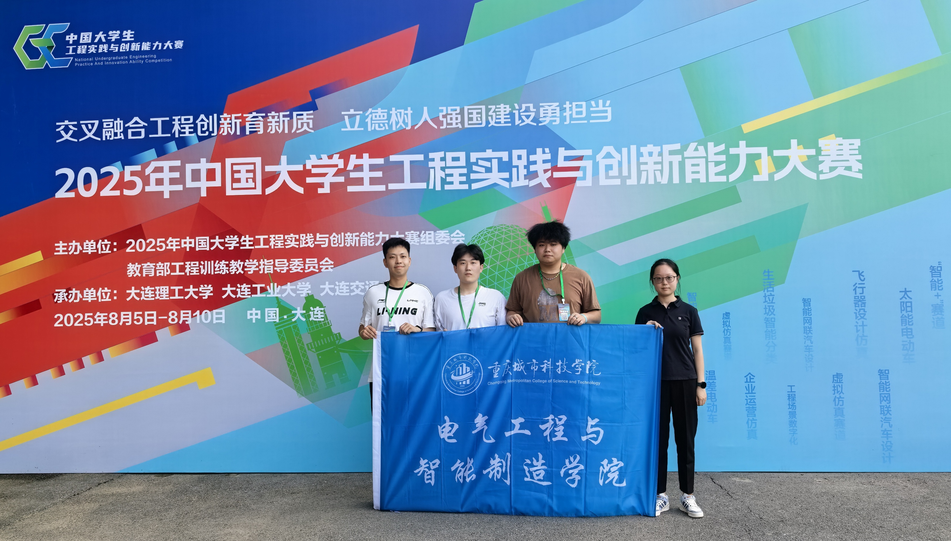 近日,备受瞩目的2025中国大学生工程实践与创新能力大赛圆满落幕。在这场汇聚全国高校工程创新精英的巅峰对决中,来自ballBET贝博BB艾弗森电气工程与智能制造学院的2支参赛团队凭借出色表现,双双荣获全国总决赛一等奖。 此次大赛由教育部工程训练教学指导委员会主办,吸引了来自全国34个省(自治区、直辖市、香港特别行政区、澳门特别行政区)和新疆生产建设兵团的771所高校的12.6万名大学生同场竞技,属于教育部认证全国大学生A类学科竞赛,是国内工程实践与创新领域规模大、影响力广的重大赛事。本次大赛以“交叉融合工程创新育新质,立德树人强国建设勇担当”为主题,设立了新能源车、“智能+”、虚拟仿真三大赛道,共9个赛项,共建立4个国赛分赛场。内容涵盖新能源、人工智能、智能制造等前沿领域,旨在锻炼学生的创新思维和解决实际问题的能力,推动高校工程教育改革,为国家培养适应未来发展需求的创新型工程人才。 飞行器设计仿真赛项——万人争锋,协同对抗,全国八强 8月2日,飞行器设计仿真赛项决赛在北航杭州国际创新研究院举办。本项赛道共吸引全国30个省份近300所高等本科院校3000余支团队上万名学子参赛,最终79所高校94支团队晋级国赛。ballBET贝博BB艾弗森电气工程与智能制造学院该支参赛队,历经“校—省—国”三级赛制,以重庆市季军晋级国赛;国赛阶段,面对“协同对抗”任务的复杂要求,团队成员唐鹏、赵宝印、刘畅经历了数月的集中备赛——从规则认知深化到任务模块训练,从突发问题模拟到团队协作磨合,指导教师刘余、史丙君全程参与制定培训计划,通过案例分析、头脑风暴等方式针对性提升薄弱环节。比赛现场,三人沉着应对航空救援与协同对抗双重任务:前期按计划执行时,他们凭借反复练习的经验有序推进;面对临时调整的作战指令,团队迅速分析问题、修正策略,最终以稳定的发挥在全国八强中占据一席之地,更打破了该校该赛项的历史最佳战绩。 (飞行器设计仿真团队 左起为:刘畅 赵宝印 唐鹏 刘余) 此项赛事聚焦低空经济、国防建设等国家需求,为师生搭建科技创新实践平台。不仅提升了综合职业素养,更促进校际交流,扩大了学校影响力,通过竞赛平台,让学生提前接触行业前沿问题,在“做中学”中深化了对低空飞行器设计、协同控制等核心技术的理解,推动低空技术类专业建设与行业需求精准对接,培养更多懂技术、会应用的高素质创新型人才。 新能源温差电动车赛项——龙争虎斗,竞途砺刃,新绩破恒 8月6日,新能源温差电动车赛项在大连举办。本赛道共有来自全国各省的高等本科院校151支队伍晋级国赛,分别在大连交通大学完成现场初赛,根据现场初赛成绩取前40%晋级,并在大连理工大学完成全国总决赛现场决赛比拼。备赛期间,团队成员们全身心投入,从省赛到国赛,历经10月的备赛时长,面对技术难题和时间压力,他们不断优化设计方案,进行反复测试与改进。备赛过程中,指导老师刘余、何湧全程跟进,从机械结构设计、三维建模到温差驱动模块及动力传输系统、工程训练与PCB电子电路(EDA)设计等,均给予及时正确的详细指导。最终,学校该赛项参赛学子,先焱、张善波、程江澜在国赛现场初赛表现突出,以9.6点(满点10点)的高分成绩顺利进入现场决赛,并在为期4天的激烈竞赛长时战线中有勇有谋,稳定发挥,最终创造新绩,一举斩获国赛一等奖。 (新能源温差电动车团队 左起为:先焱 程江澜 张善波 刘余) 此项赛事聚焦新能源需求与发展,将传统无碳小车动力源进行替换,采用温差模块方案的清洁能源输入,经精密计算设计及制造装配后的驱动机构、传动机构、凸轮、转向机构等结构的运动,在调试后能独立无其他外驱力情况下实现规定轨迹。该项竞赛综合性考验了学生对于复杂工程问题的思考与实践能力,也有效培养了学生对未来科学技术发展的主动思考能力和工程师责任感。 赛事总结——实战砺能,竞教相长,向新而行 近年来,学校高度重视学生实践创新能力的培养,积极组织学生参加各类学科竞赛,为学生提供良好的实践平台和指导支持。此次在2025中国大学生工程实践与创新能力大赛中取得的优异成绩,是学校长期坚持实践育人、深化教育教学改革、深化产教融合的成果体现。展望未来,学校将继续秉承“厚德、博学、求是、创新”的办学理念,鼓励更多学生投身专业竞赛和创新创业实践,致力于培养更多高层次、高素质、高技能的优秀人才。(图/赵宝印 唐鹏 张善波 文/刘畅 先焱 程江澜 传媒中心 王庆莲/编辑)