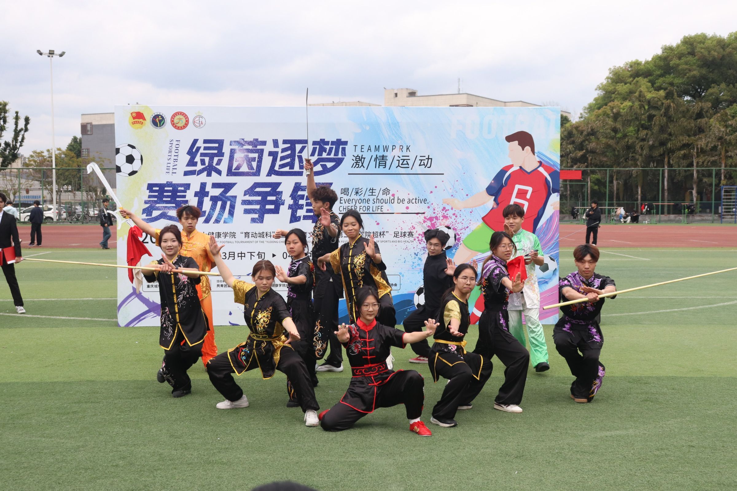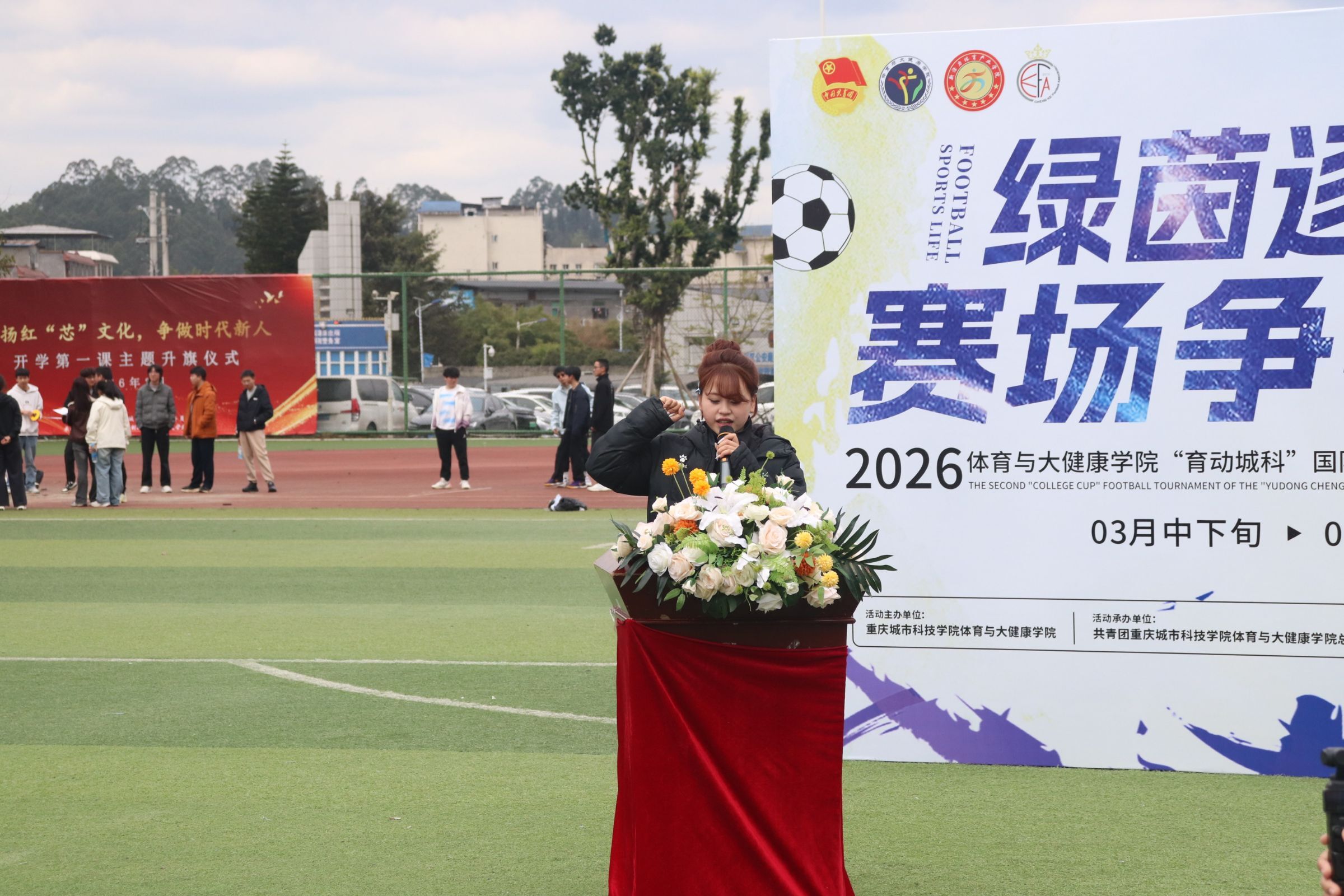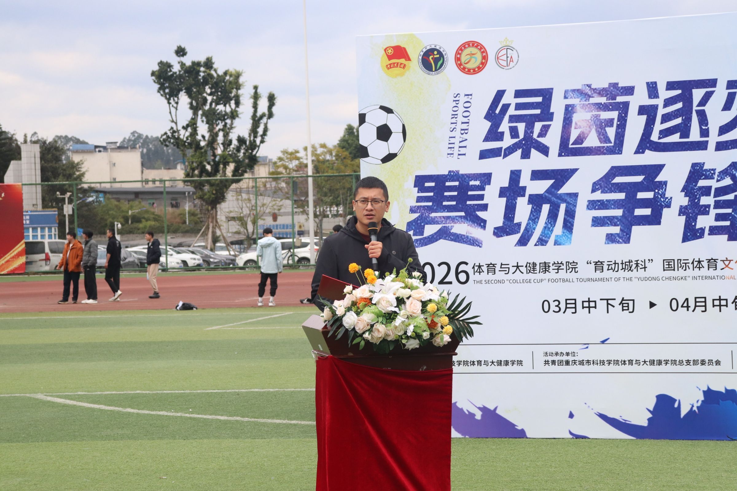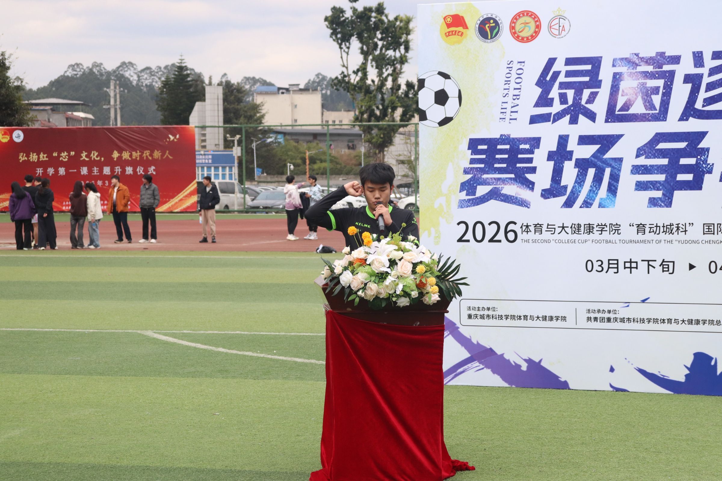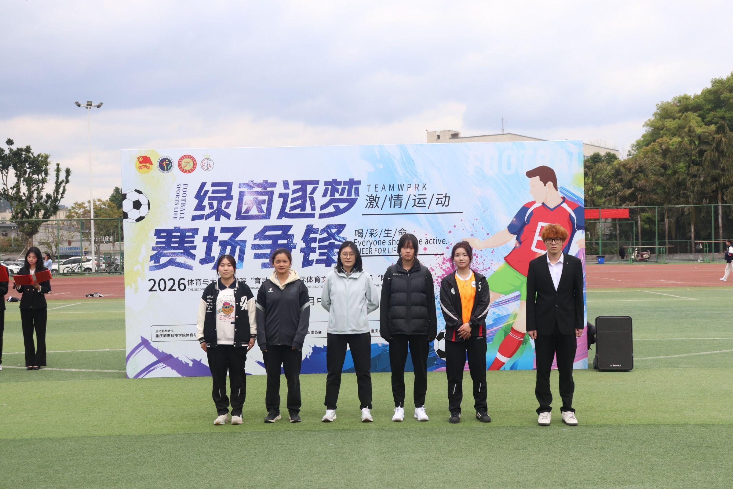为深入贯彻全民健身国家战略及“三大球”发展相关部署,积极响应教育部怀进鹏部长在十四届全国人大四次会议民生主题记者会上提出的“广泛开展‘三大球’比赛,让‘班超’‘校超’燃动校园”的重要论述,切实落实《学生体质强健计划》要求与体教融合发展理念,体育与大健康学院特此举办“育动城科”国际体育文化节之第二届“院超杯”足球赛。明德书院副院长万能,体育与大健康学院党总支副书记李之琦,体育与大健康学院专业教师、男子校足球队教练陈秋屹,以及各参赛队伍辅导员出席本次开幕仪式。本次开幕式由体育与大健康学院团学工作人员常墅、师洁茜担任主持人。 赛事尚未开启,激情已然点燃。伴随着激昂的音乐,武术表演者登场,一套套刚劲有力的拳法、行云流水的招式轮番上演,腾挪跳跃间尽显中华武魂的豪迈与力量。中华传统武术的刚健之美,与足球运动的热血激情完美交融,瞬间点燃现场氛围,为整场开幕式拉开了精彩序幕,让在场观众提前感受到了体育竞技的独特魅力。 体育与大健康学院党总支副书记李之琦登台致开场辞。李书记首先向筹备本次赛事的全体工作人员致以诚挚的感谢,以及即将参赛的运动健儿们致以热烈的祝福。他强调,足球运动不仅是体能的比拼,更是意志与团队精神的考验,希望同学们在赛场上顽强拼搏、奋勇争先,既赛出水平、赛出风格,也能在运动中强健体魄、收获友谊。 运动员代表王昌红身着队服走上台前,庄严举起右手进行宣誓:“恪守体育道德,尊重对手,尊重裁判,服从判罚,顽强拼搏,永不言弃……”掷地有声的誓言回荡在田径场上空,不仅是运动员们对赛场的郑重承诺,更彰显出城科学子严谨的竞技态度与良好的体育素养,为赛事公平、有序开展奠定了坚实基础。 裁判员代表黄沼钦迈着坚定的步伐上台宣誓,承诺将严格遵守竞赛规则和裁判员纪律,秉持公正、客观、准确的原则,认真履行裁判职责,不偏不倚、严格执裁,全力维护赛场秩序,保障每场比赛的公平与流畅,为赛事顺利推进保驾护航。 最令人期待的球队亮相环节如约而至!各参赛队伍组成整齐方阵,依次走过主席台。队员们精神抖擞,喊着响亮的口号,以沉稳坚毅的气质、充满活力的冲劲亮相,现场掌声雷动。这不仅展现出城科学子的青春风貌与团队凝聚力,更让全场观众对即将到来的比赛充满期待。 男子组 女子组 随着主持人宣布开球,明德书院副院长万能手持哨子,一声清脆的哨响划破天际!足球应声飞出,绿茵赛场瞬间沸腾。运动健儿们迅速进入比赛状态,传球、带球、射门……每一个动作都牵动着现场观众的心。 小组赛开赛后,绿茵场上的气氛迅速升温。运动员们奔跑如飞,脚下的皮球在队员间快速传递,展现出娴熟的控球技术与默契的团队配合。观众席上,加油声、助威声此起彼伏,整个田径场沉浸在热烈浓厚的足球氛围中。每一次精彩传球、每一次稳健防守、每一次极具威胁的射门,都牵动着在场每一个人的心弦。绿茵场上,青春热血与拼搏汗水相互交织,体育的独特魅力在这一刻展现得淋漓尽致。 首场对决已然精彩纷呈,后续赛事更值得期待。相信在接下来的赛程中,各支队伍将继续全力以赴、奋勇争先,在绿茵场上续写更多热血与精彩,让我们共同拭目以待! 本次“育动城科”国际体育文化节之第二届“院超杯”足球赛,是体育与大健康学院落实“五育并举”教育方针的重要实践,也是推进校园体育文化建设的关键举措。学院将广泛开展“三大球”赛事活动,让“班超”燃动运动场,持续营造浓厚热烈的体育竞技氛围。于青年学子而言,这不仅是展现足球技艺的舞台,更是锤炼意志品质、增强团队协作意识的成长课堂;于学院发展而言,本次赛事进一步丰富了校园体育文化内涵,搭建起师生互动、生生交流的体育桥梁,让“全民健身”理念深入人心,让“体育强国”使命在青年学子心中落地生根,为培养德智体美劳全面发展的时代新人注入强劲动力。(传媒中心 高晓兰/编辑)