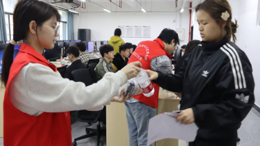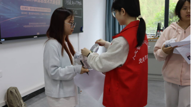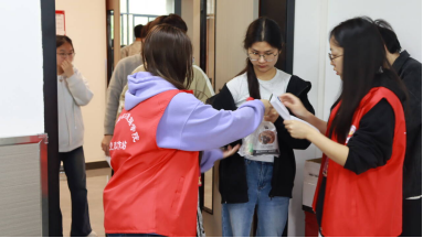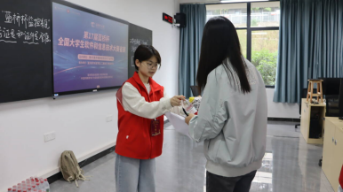 (志愿者为参赛选手发放物资)