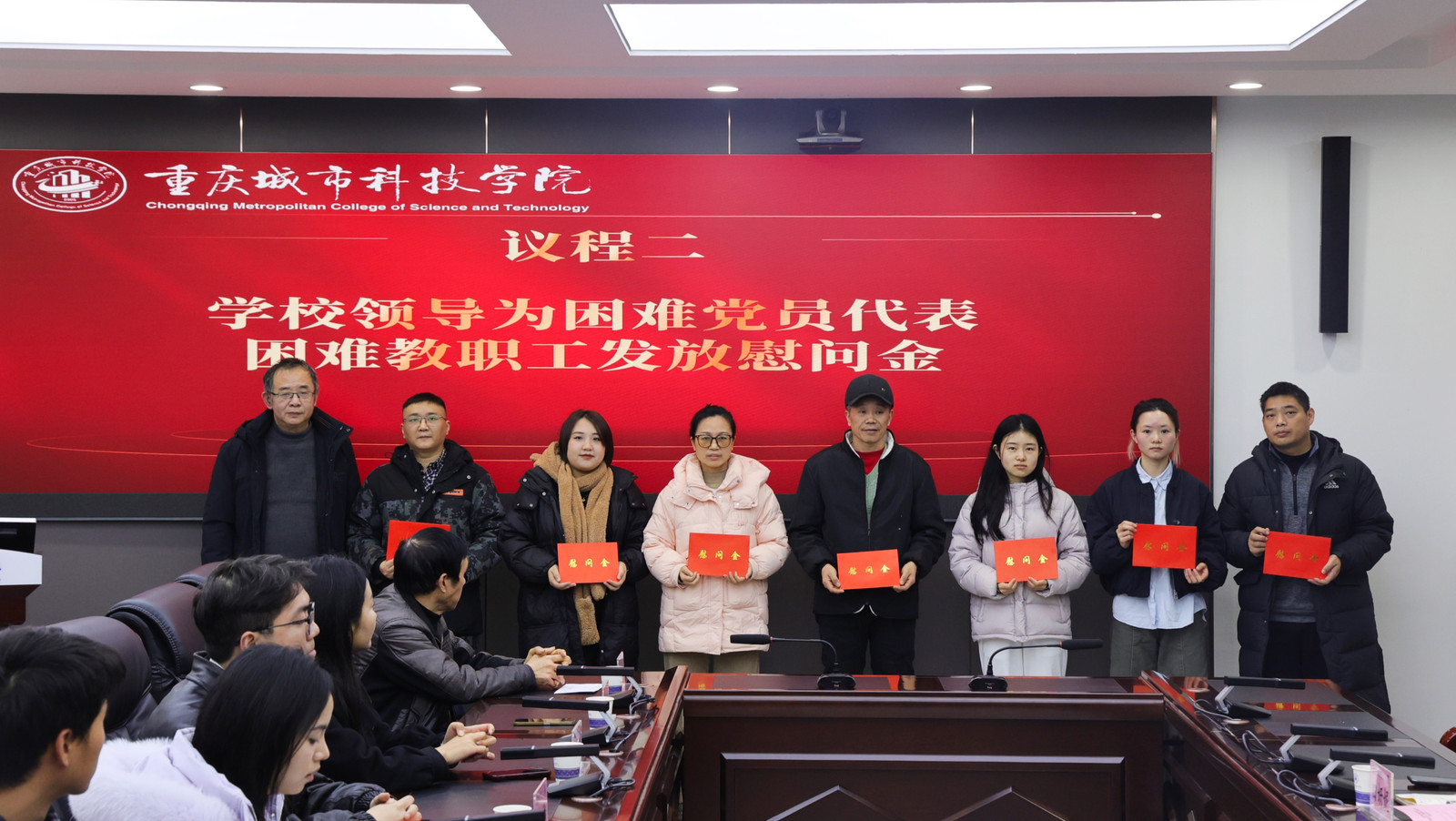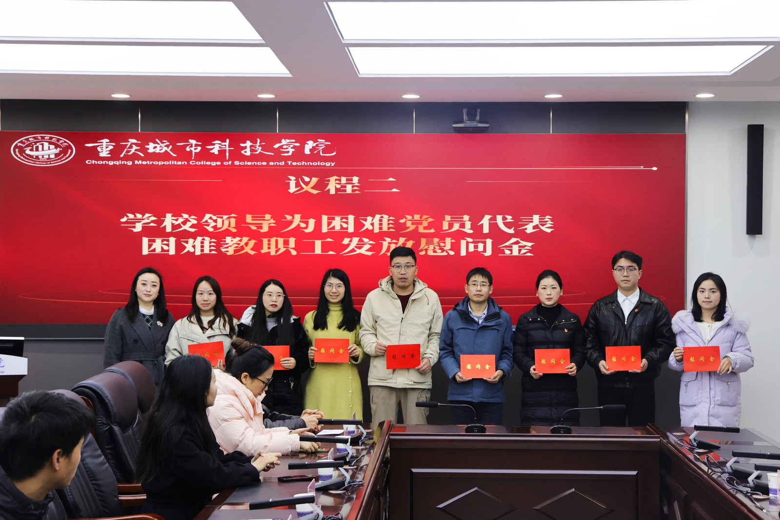 为深入学习贯彻习近平新时代中国特色社会主义思想,加强对学校困难党员、困难教职工的关怀,1月19日上午,学校在第一行政楼101会议室召开生活困难党员、困难教职工新春慰问座谈会。学校理事长刘学民,党委书记、政府督导专员王银峰,纪委书记、校长助理田妍妮,各分工会主席、困难党员代表以及全体受补助困难教职工参加会议。座谈会由学校党委组织部部长刘茜主持。 会议伊始,刘茜部长简要介绍了学校生活困难党员、困难教职工慰问工作的开展情况。 学校纪委书记、工会主席、校长助理 田妍妮为困难党员、困难教职工发放慰问金 学校党委书记、政府督导专员 王银峰为困难党员、困难教职工发放慰问金 学校理事长 刘学民为困难党员、困难教职工发放慰问金 随后,学校向困难党员代表表达了组织的关怀与慰问,并现场发放慰问金。 建筑管理学院困难党员代表罗姣发言 学生处困难教职工代表李欣蔓发言 与会代表纷纷对学校领导的关心表示感谢。他们在发言中表示,将始终牢记党恩,积极克服困难,珍惜现有条件,以更加饱满的热情为学校事业发展贡献力量。 刘学民理事长对本次座谈会作总结讲话 理事长结合自身亲身经历,为大家上了一堂生动的励志课。他勉励与会困难党员、困难教职工,要坚定信心,当前的困难只是暂时的,要发扬吃苦耐劳、坚韧不拔的精神,在磨砺中实现自我超越。他表示,学校始终用心用情做好关怀工作,切实把温暖送到需要帮助的教职工心上,起到“雪中送炭”的作用。他希望大家继续努力,共同推动学校各项事业向前发展。 本次座谈会在温暖而振奋的氛围中圆满结束。青年兴则国家兴,希望受慰问党员、教职工能铭记党的嘱托,感党恩、听党话、跟党走,坚定理想信念,脚踏实地、勇毅前行,在新时代的赶考路上交出合格答卷。(传媒中心 高晓兰/编辑)