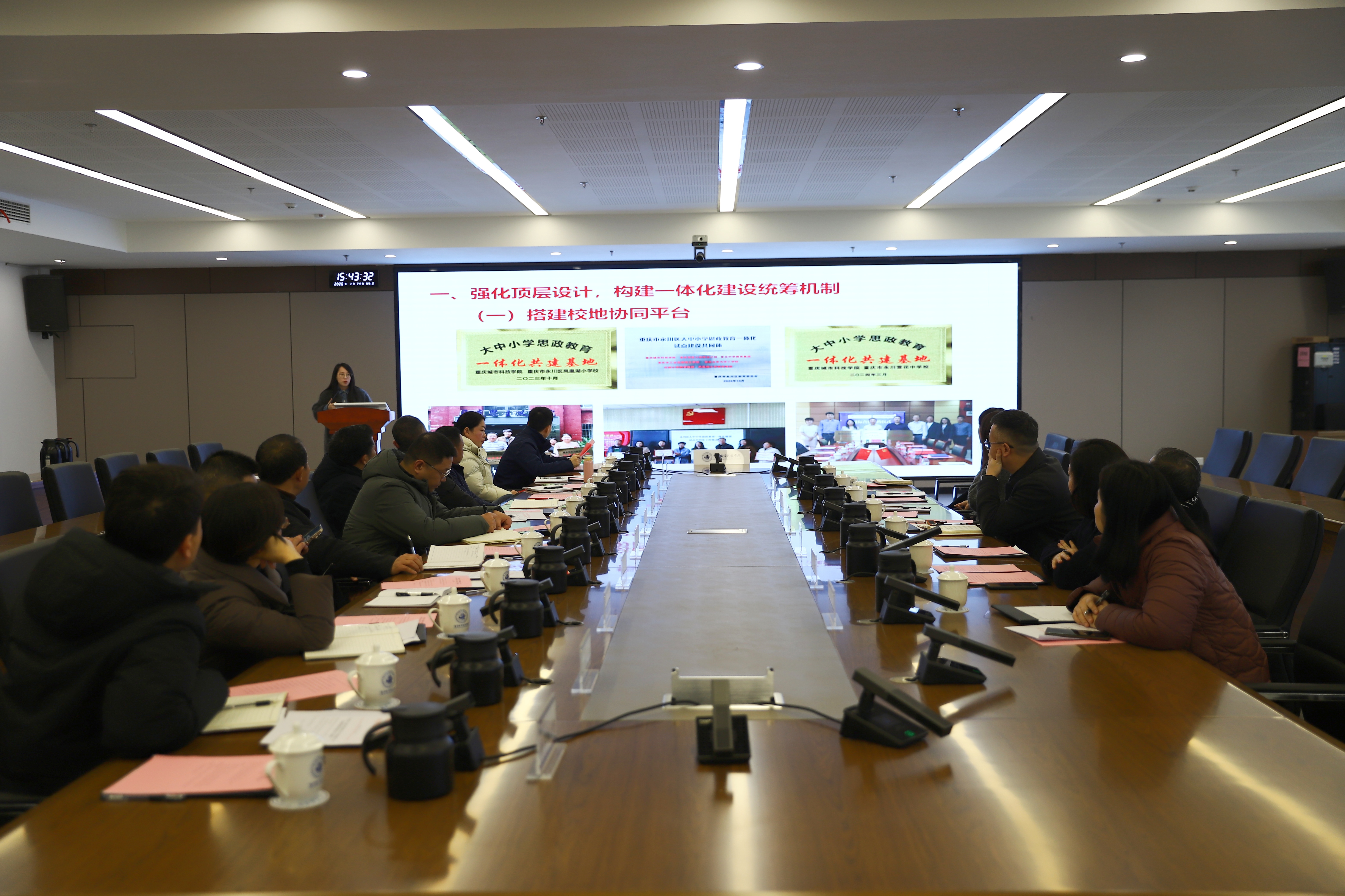 为扎实推进大中小学思政课一体化共同体建设。1月14日,巴南区大中小学思政课一体化共同体(第八组)建设工作推进会在ballBET贝博BB艾弗森巴南校区召开。会议旨在凝聚共识、协同发力,共同探索大中小学思政课一体化共同体建设的有效路径与创新机制。 会前,与会人员参观了学校巴南校区的实验室、实践平台及校园环境,实地感受了校区在硬件设施、教学资源与育人文化方面的建设成效,为后续跨学段资源融合与协作奠定了直观基础。 会上,学校马克思主义学院副院长张沙沙系统汇报了学院在大思政课一体化建设方面的规划与实践。重点介绍了在课程体系创新、实践教学拓展、数字化资源开发及区域支持举措等方面的探索与成果,展现了牵头单位推动一体化建设的责任与行动。 在交流研讨环节,各成员单位负责人围绕共同体建设的机制创新、课程衔接、资源共享、师资共育等核心议题展开讨论。大家结合本校实际分享了思政课教学改革、特色活动开展等方面的经验,并就一体化进程中的难点与对策提出了建设性意见。通过深入交流,进一步明确了下一步协作的重点方向与具体任务。 学校马克思主义学院院长段吉福在研讨发言中表示,推进大中小学思政课一体化共同体建设是一项需要持续投入的系统工程,马克思主义学院将在学校的整体部署下,积极落实本次会议形成的共识,并与各成员单位深化协作,共同致力于构建层次衔接、资源共享的区域思政育人新格局,切实提升育人实效。 学校校长助理、巴南校区管委会党工委书记、常务副主任崔继昌在会上交流了推进思政课一体化共同体建设的思考。他强调,大中小学思政课一体化共同体建设需要全体成员协同发力,并就资源共享、师资共育、品牌共创、难题共解四个方面提出了合作方向。他表示,作为牵头单位,学校将全力做好支持与服务,与各成员单位共同推动共同体建设走深走实。 此次推进会的召开,为大中小学思政课一体化共同体建设凝聚了共识、明确了路径。下一步,各成员单位将持续深化联动,夯实协作机制,努力推动思政教育在各学段有效衔接、层层递进,为培养担当民族复兴大任的时代新人贡献力量。(邹岷骏 张嘉 魏守能 吴浚绮/图片 传媒中心 胡乐怡/编辑)