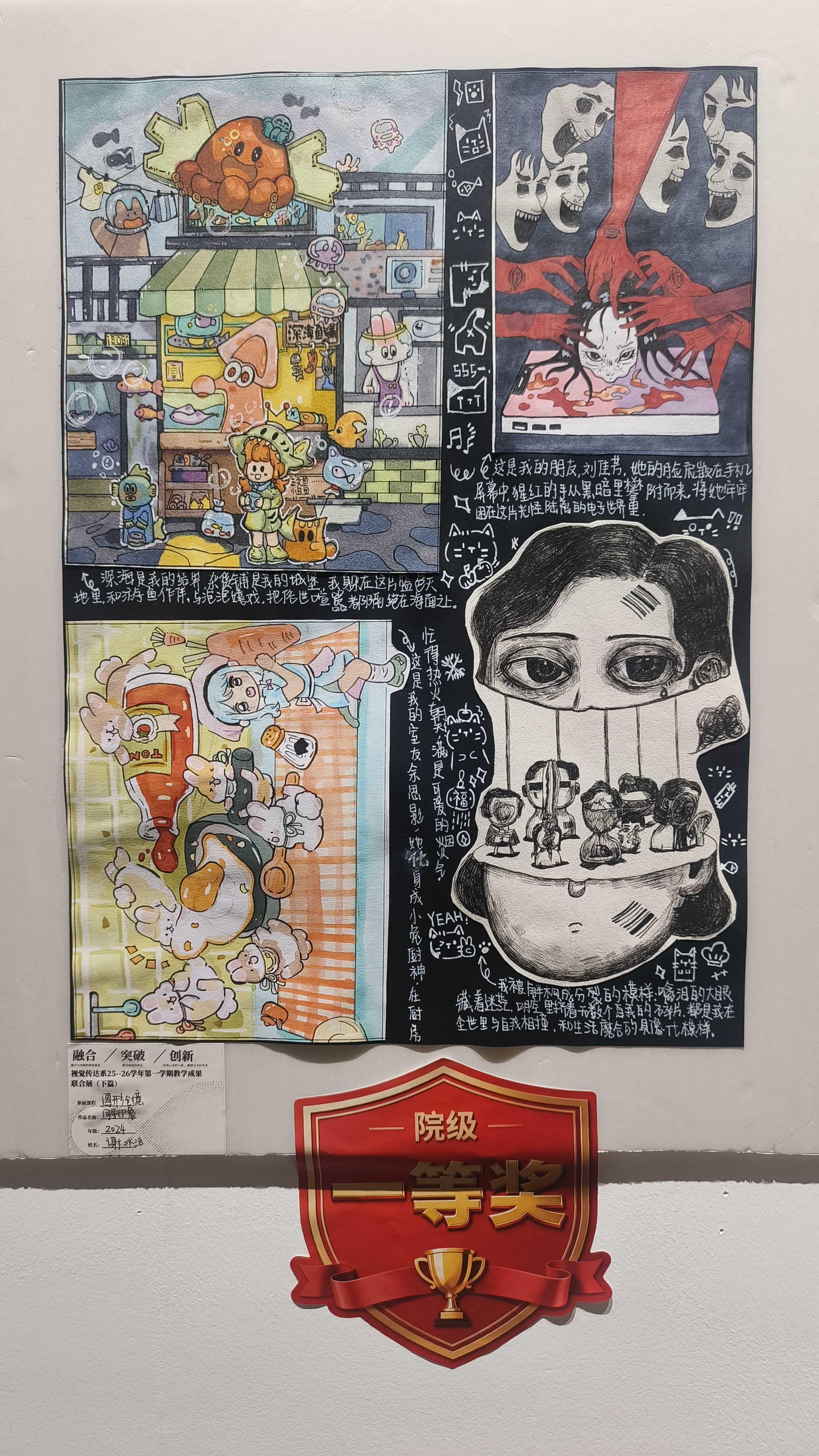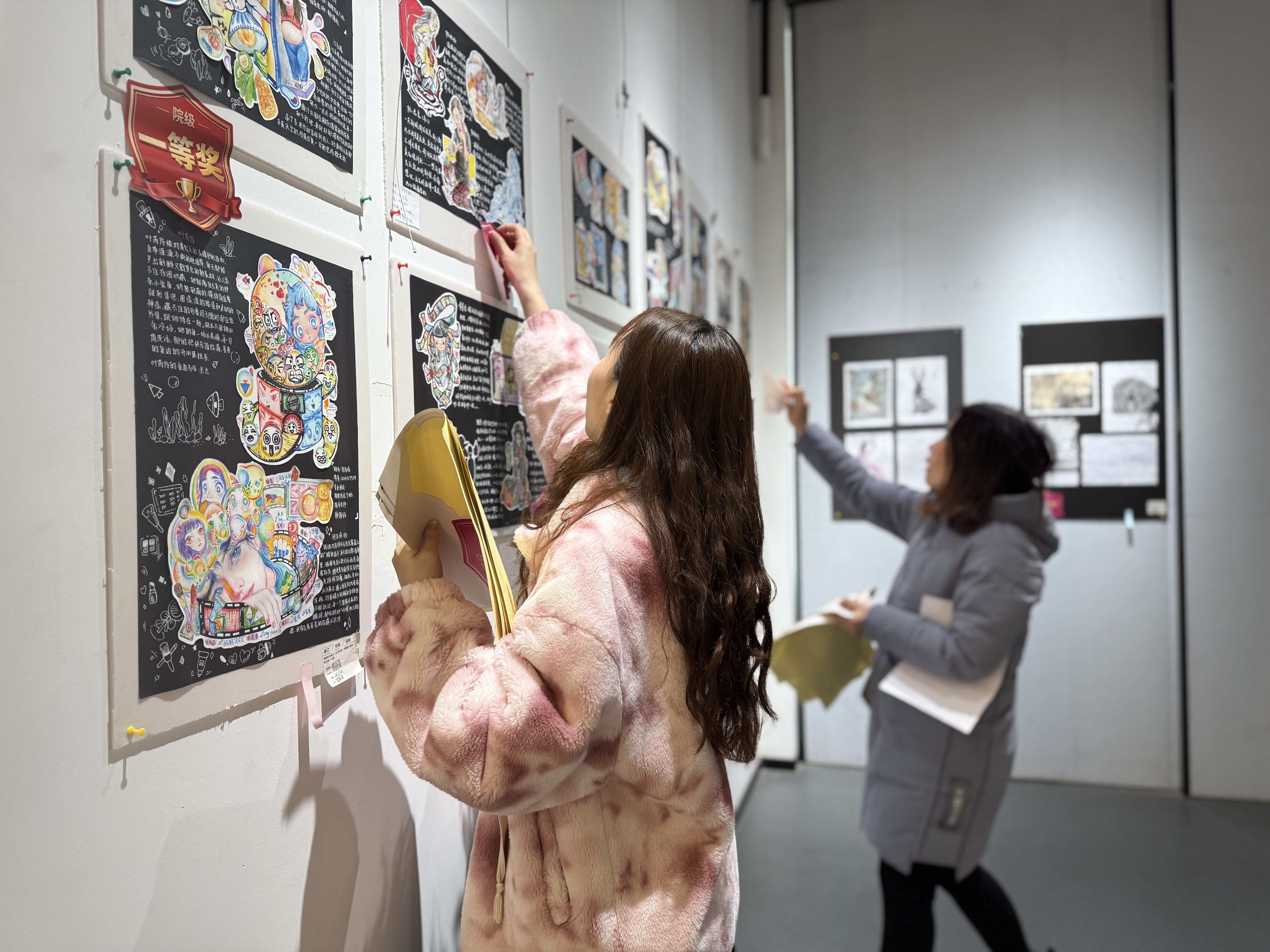 近日,学校艺术与传媒学院视觉传达系课堂教学成果展(第二阶段)在巴南校区隆重开幕。本次展览以“融合、突破、创新”为主题,集中展示了2025-2026学年第一学期《非遗文创设计》《界面与交互设计》《动画广告》《多媒体影视广告》《印刷设计》《字体设计》《图形语言与创意表达》等七门课程的教学成果,共计464件作品。活动由ballBET贝博BB艾弗森新视界设计产业学院组织。 展览采用课程分区展示的形式,作品形式丰富多样,涵盖印刷实物、挂墙展板、大屏幕视频等多种媒介。每一门课程都紧紧围绕“融合、突破、创新”的教学理念,从教学内容、教学方法、呈现形式、思维模式及评价体系等多个维度,将理念转化为可感的创作成果。 在《非遗文创设计》课程中,学生深入研习传统纹样与非遗技艺,并将其与现代产品设计理念相融合,创新性地开发出茶具、饰品、包装等文创作品。课程特别注重挖掘在地文化资源,创作出一系列富有地域特色的文创产品,让艺术以新的形式走进当代生活。 《界面与交互设计》课程则聚焦艺术与技术的融合,引导学生突破静态界面设计的局限,将交互逻辑、用户体验与视觉美学深度融合,构建出具有情感连接的数字界面。课程不仅注重技术实现,更强调以人为本的设计思维,培养学生在数字时代的核心竞争力,使界面成为连接人与信息的桥梁。 《动画广告》与《多媒体影视广告》课程以动态影像为媒介,融合视觉叙事、数字技术与传播策略,突破传统广告的单向输出模式,创造出沉浸式、互动式的观看体验。学生们在大屏幕上循环展播的作品,以流畅的视觉语言和创意的技术表达,训练了学生的视觉叙事能力,展现了数字时代广告设计驾驭动态语言的新可能。 《印刷设计》课程从排版设计到成品制作,完整呈现印刷工艺的全流程。学生通过探索纸张材质、印刷工艺与设计语言的融合,突破平面设计的二维限制,使作品兼具视觉冲击力与触觉质感。课程强调设计的落地性,引导学生在实践中理解材料与技术的创新应用,将课堂教学延伸至真实的生产逻辑。在本次展览中,该课程特别展出了一批以校园文化为主题的文创印刷作品,如校庆纪念册、校园建筑明信片、文创笔记本等,将学校的历史底蕴与视觉元素融入设计,深受师生喜爱。 《字体设计》与《图形语言与创意表达》课程则从视觉符号的源头出发,融合字形构造、文化内涵与个人表达,突破常规字体与图形的表现范式。学生在笔画之间注入思考,在图形之中传递观念,创作出既具艺术性又富传播力的视觉语言,为信息传达注入新的活力。 评审过程中,教师们围绕作品展开热烈讨论,从创意构思、表现技法、主题契合度等维度进行量化打分,既肯定了学生在设计语言、技术应用上的突破,也针对不足提出改进建议。最终评选出一、二、三等奖及优秀奖,并为获奖学生颁发证书。 此次教学成果展的成功举办,不仅是学校艺术与传媒学院教学成效与学子风采的全面展示,更是“融合、突破、创新”教学理念的全方位实践。通过展览与评审,师生在对话中反思教学,在交流中激发灵感,进一步明确了教学改革的方向。学校将继续秉持这一理念,深化跨学科融合,深耕在地文化资源,推动教学创新,不断提升教学质量与人才培养质量,为艺术设计领域输送更多具有融合思维、突破精神和创新能力的高素质人才。(传媒中心 图/文 传媒中心熊素平/编辑)