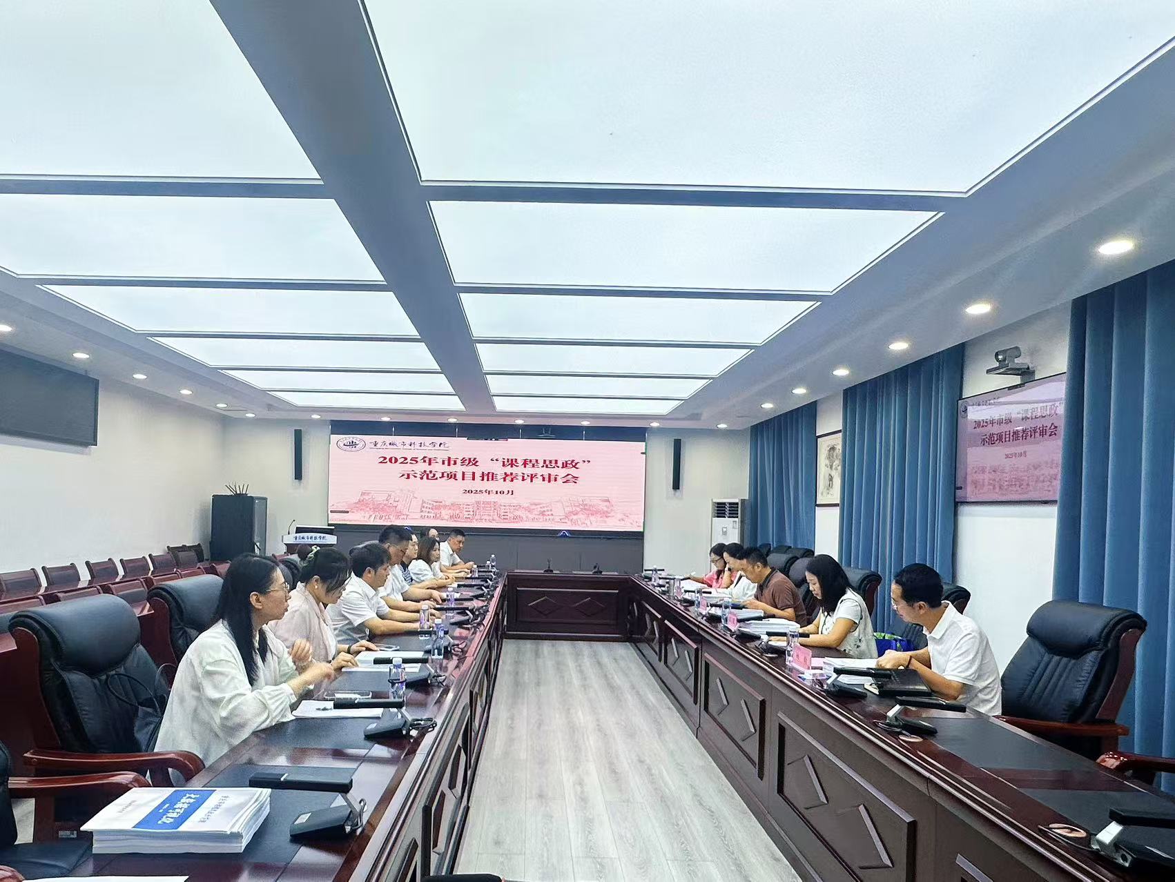 深入推进课程思政体系建设,特邀四川外国语学院教务处处长刘玉梅(线上)、重庆文理学院文化传播与设计学院副院长高小勇、特聘专家张玲、教学质量监控与评估中心主任姚韵、校级督导李光凤担任评审专家,各项目团队负责人及主要成员参加了会议,构建“储备—培育—申报”的良性发展机制。
